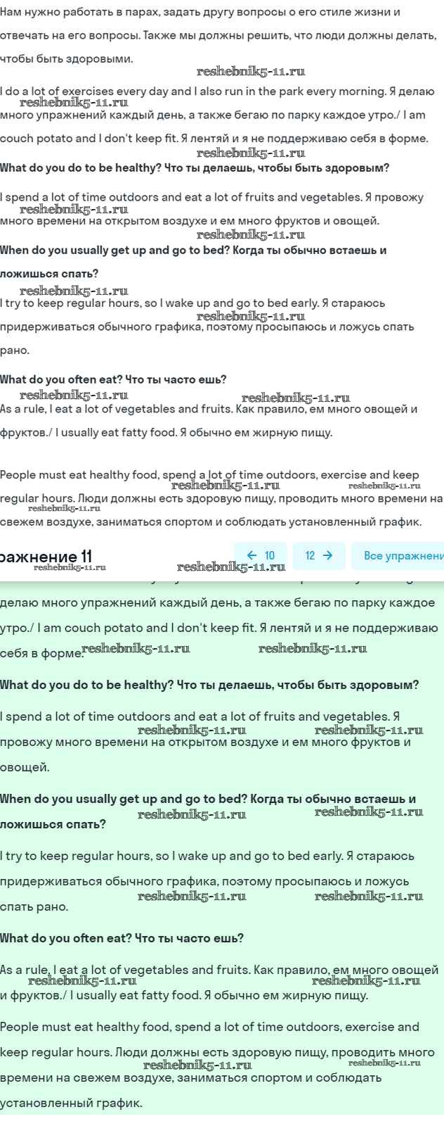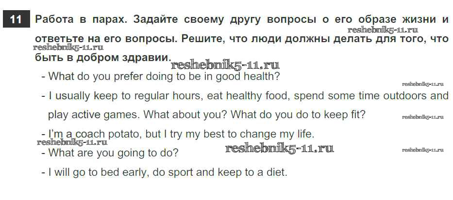 Готовая домашняя работа с ответами по Английскому языку за 5 класс Афанасьева, Михеева, Баранова Рабочая тетрадь Rainbow Дрофа 2017 ФГОС - Unit Free. Healthy Ways 11