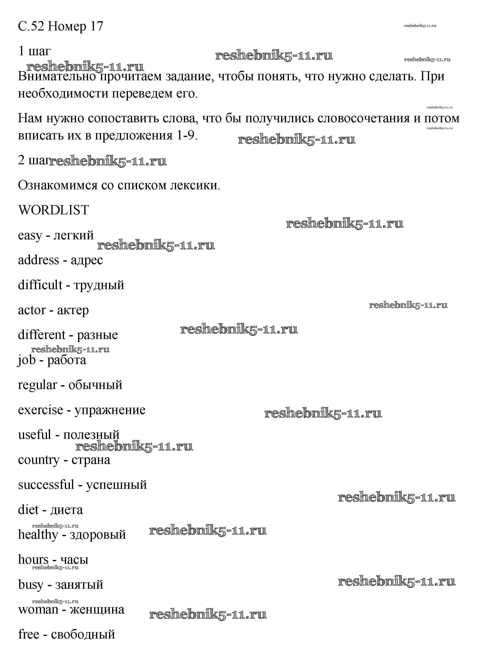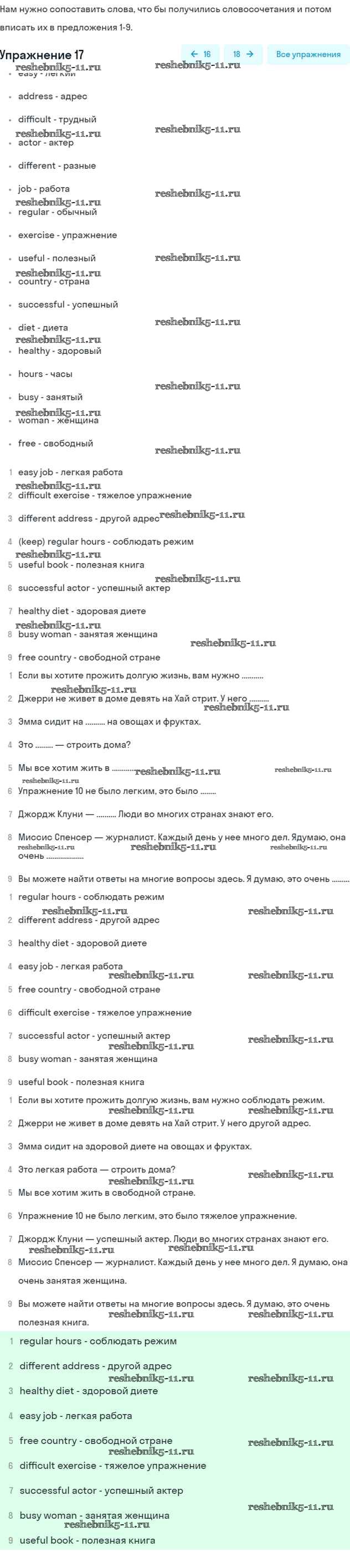 Готовая домашняя работа с ответами по Английскому языку за 5 класс Афанасьева, Михеева, Баранова Рабочая тетрадь Rainbow Дрофа 2017 ФГОС - Unit Free. Healthy Ways 17