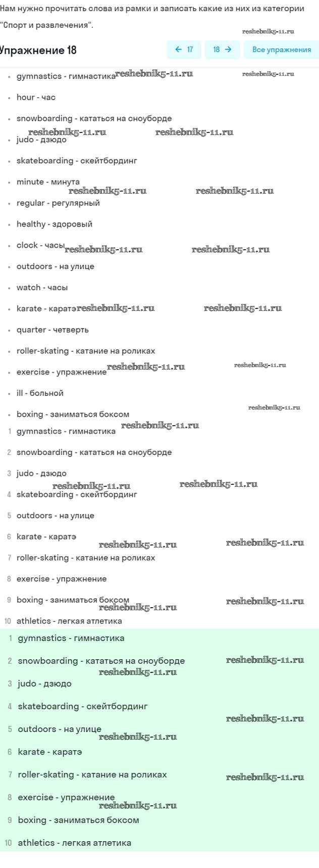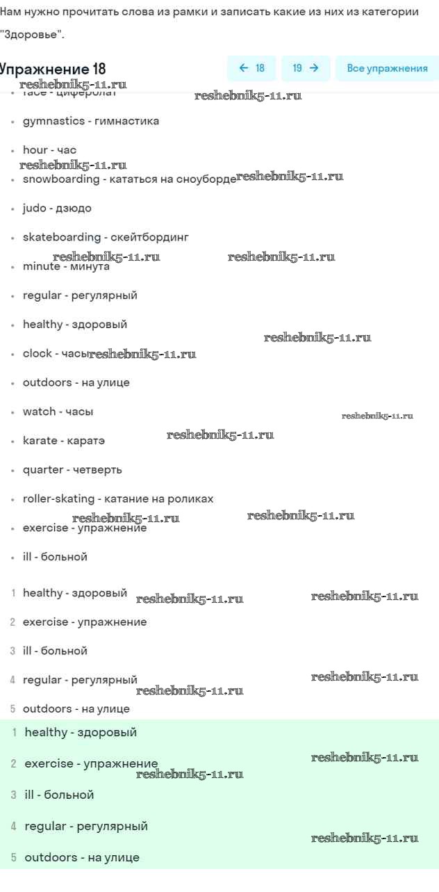 Готовая домашняя работа с ответами по Английскому языку за 5 класс Афанасьева, Михеева, Баранова Рабочая тетрадь Rainbow Дрофа 2017 ФГОС - Unit Free. Healthy Ways 18