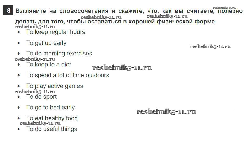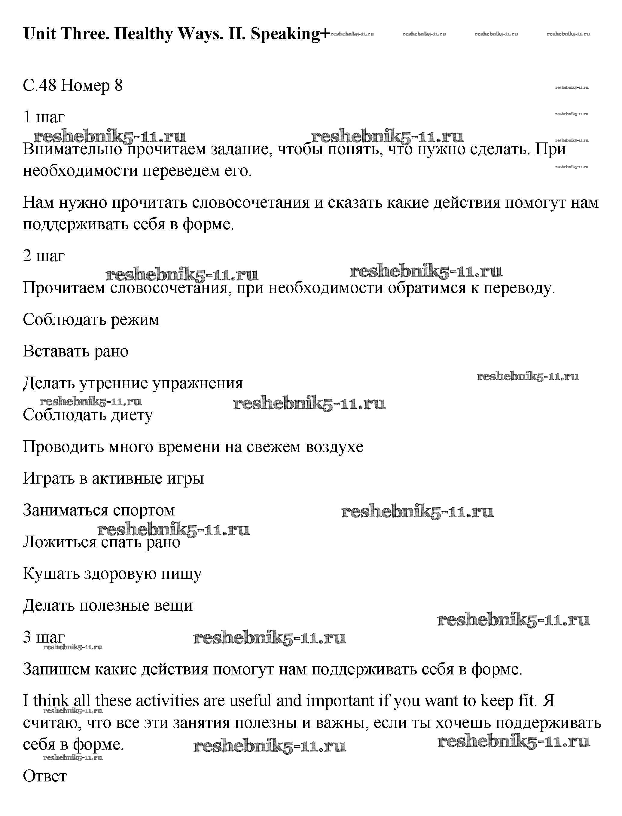 Готовая домашняя работа с ответами по Английскому языку за 5 класс Афанасьева, Михеева, Баранова Рабочая тетрадь Rainbow Дрофа 2017 ФГОС - Unit Free. Healthy Ways 8