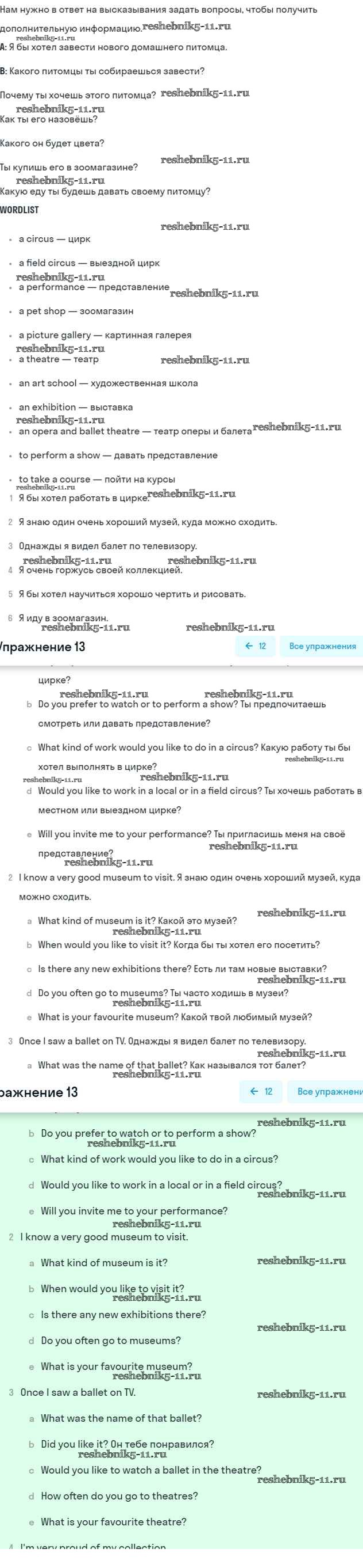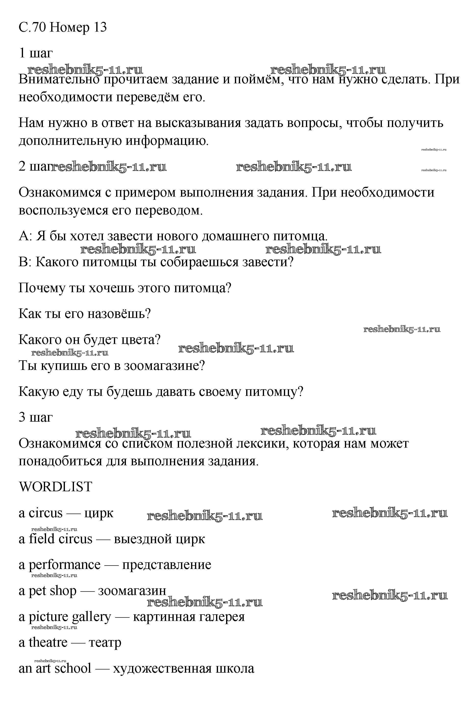 Готовая домашняя работа с ответами по Английскому языку за 5 класс Афанасьева, Михеева, Баранова Рабочая тетрадь Rainbow Дрофа 2017 ФГОС - Unit Four. After School 13