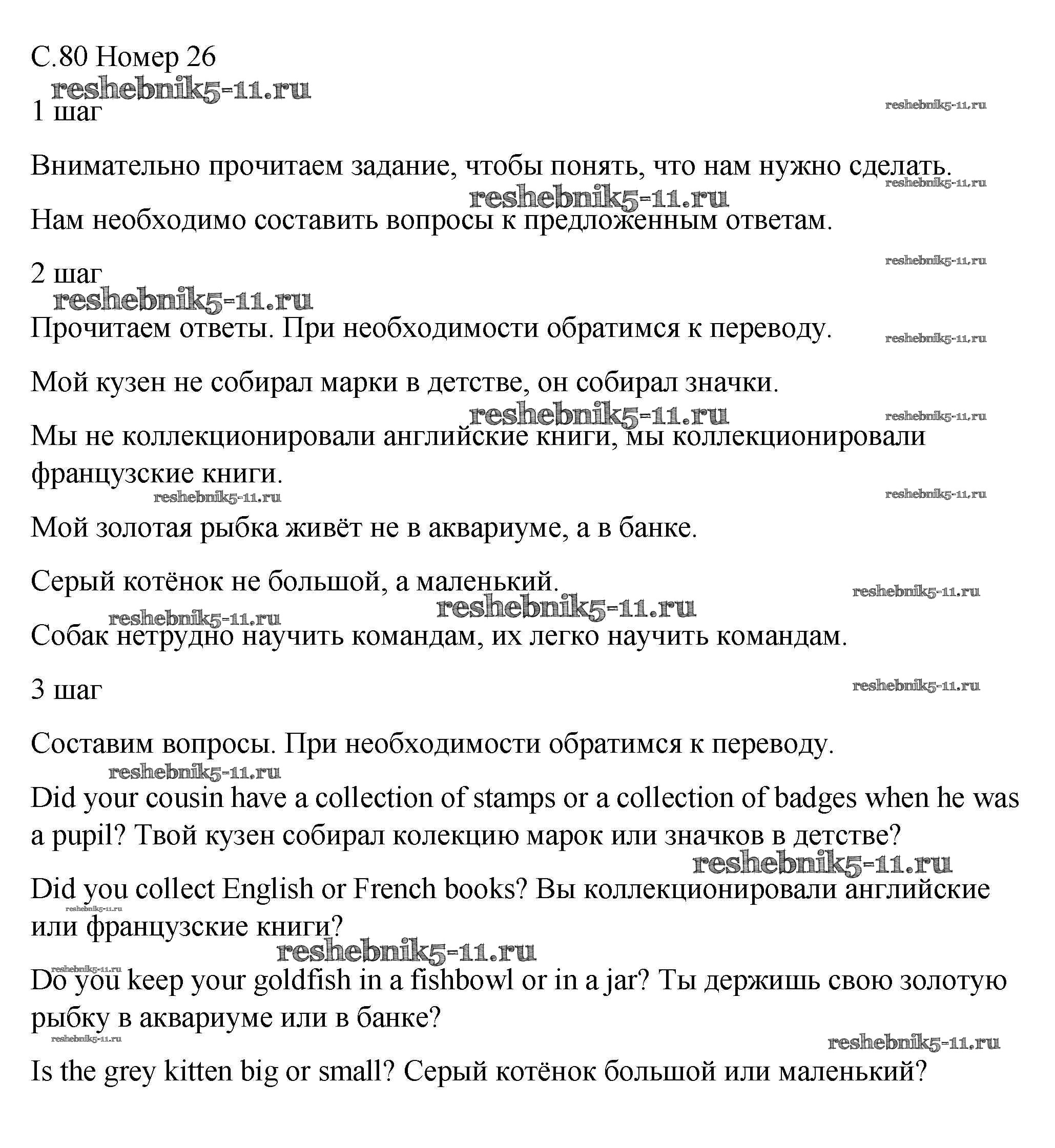 Готовая домашняя работа с ответами по Английскому языку за 5 класс Афанасьева, Михеева, Баранова Рабочая тетрадь Rainbow Дрофа 2017 ФГОС - Unit Four. After School 26
