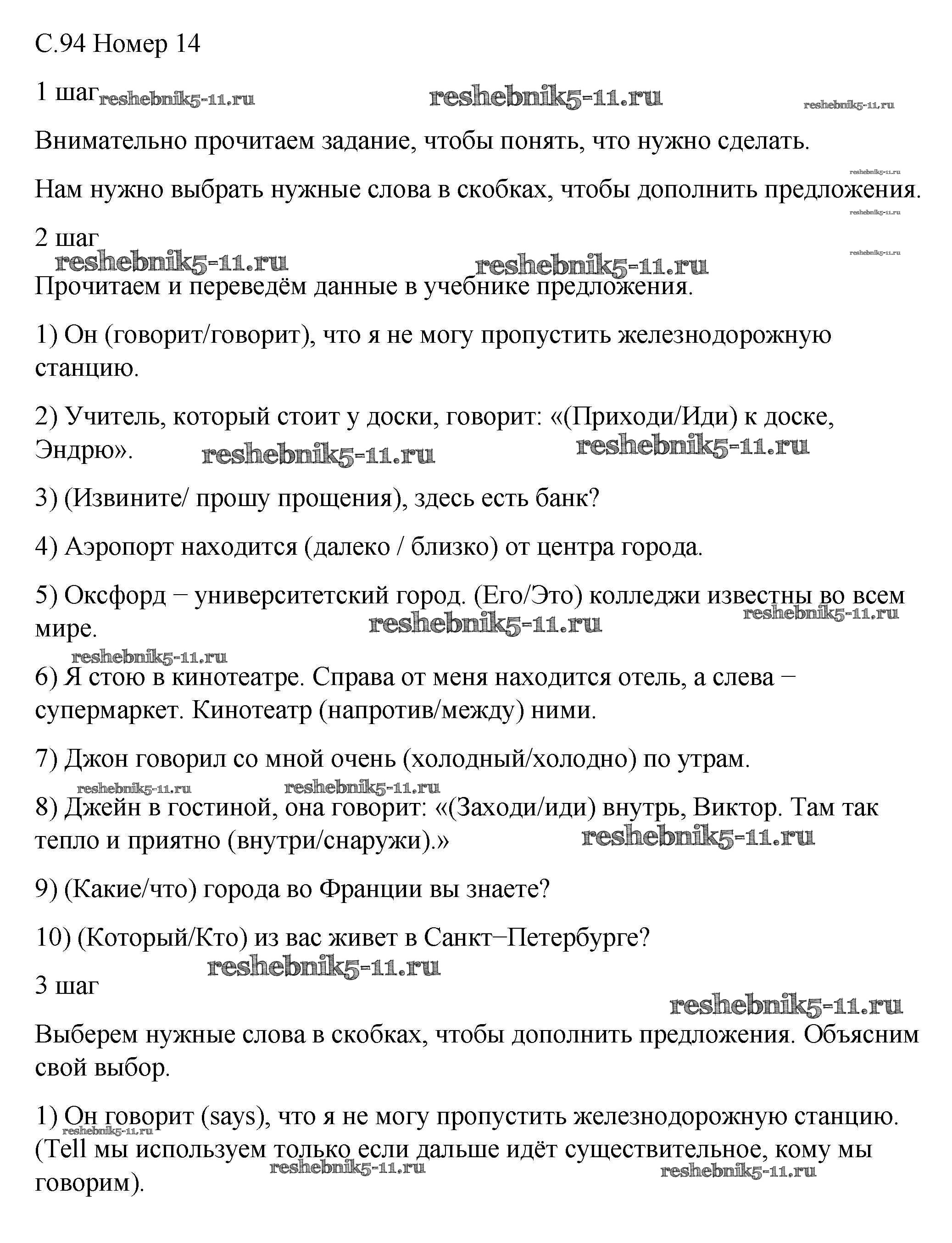 Готовая домашняя работа с ответами по Английскому языку за 5 класс Афанасьева, Михеева, Баранова Рабочая тетрадь Rainbow Дрофа 2017 ФГОС - Unit Five. From Place to Place 14