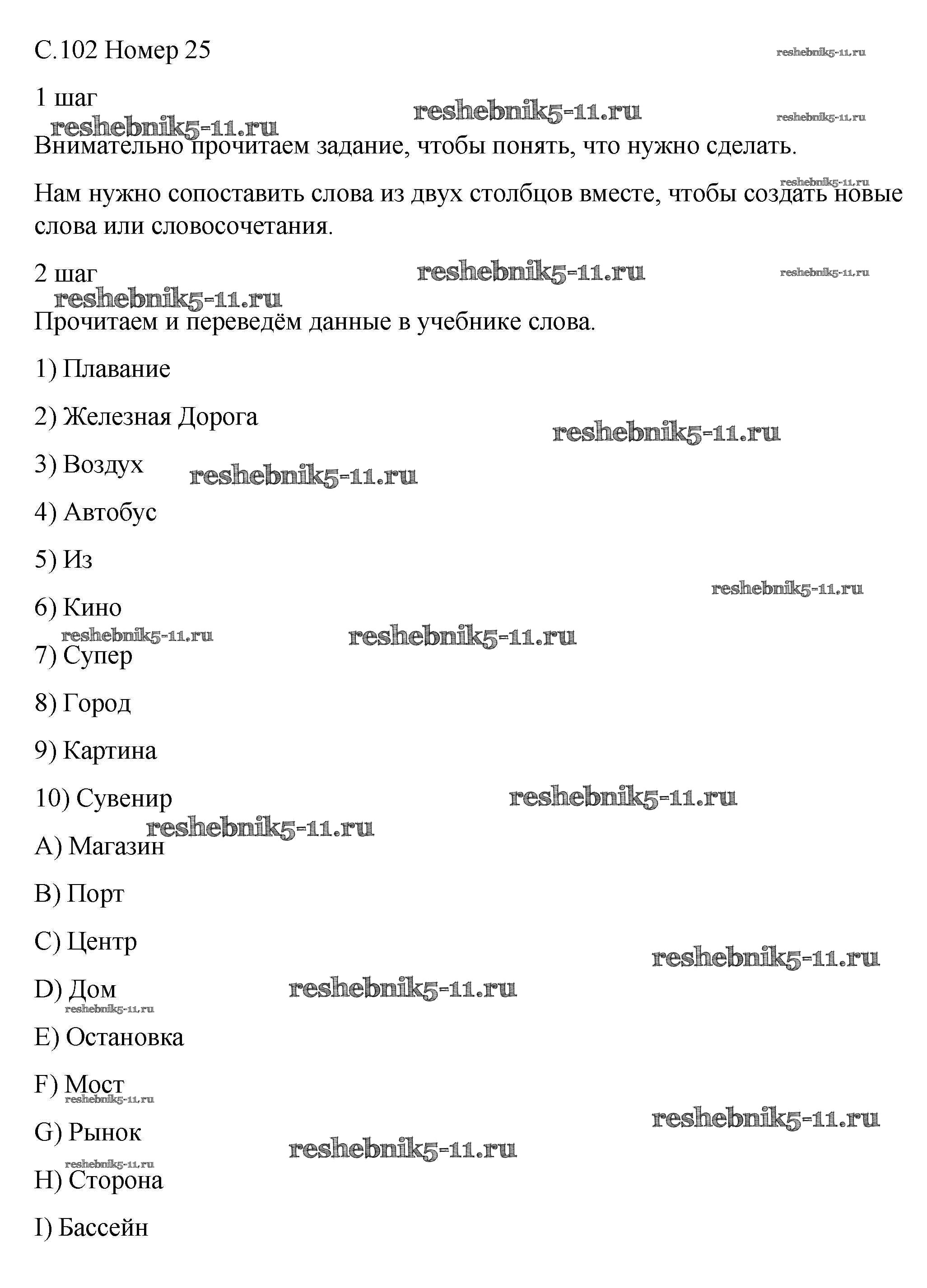 Готовая домашняя работа с ответами по Английскому языку за 5 класс Афанасьева, Михеева, Баранова Рабочая тетрадь Rainbow Дрофа 2017 ФГОС - Unit Five. From Place to Place 25