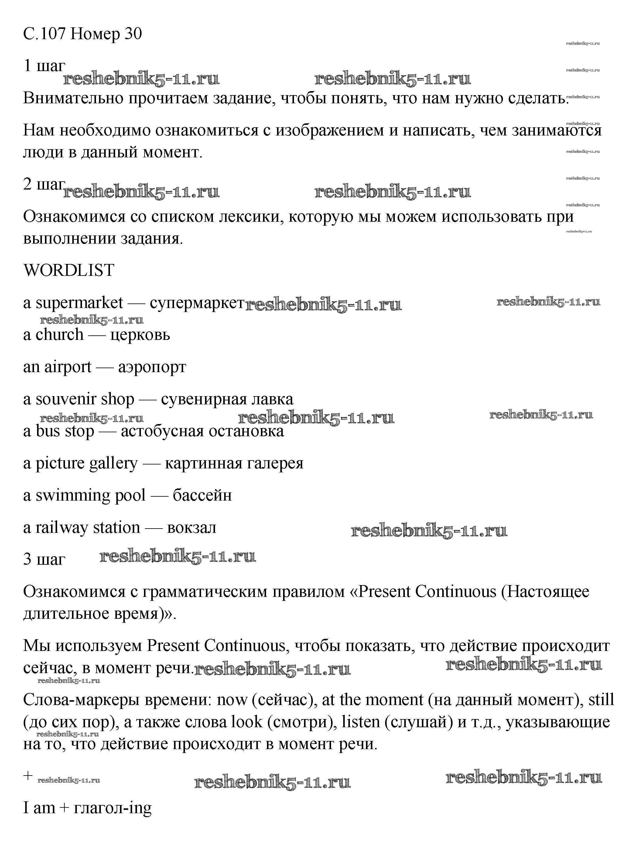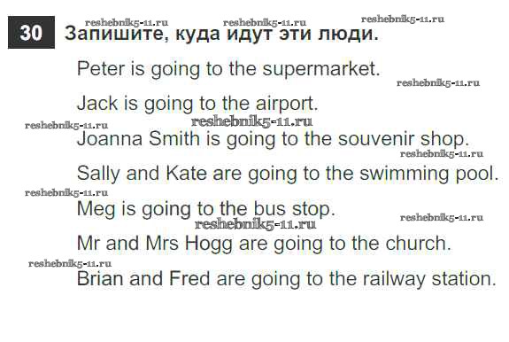 Готовая домашняя работа с ответами по Английскому языку за 5 класс Афанасьева, Михеева, Баранова Рабочая тетрадь Rainbow Дрофа 2017 ФГОС - Unit Five. From Place to Place 30