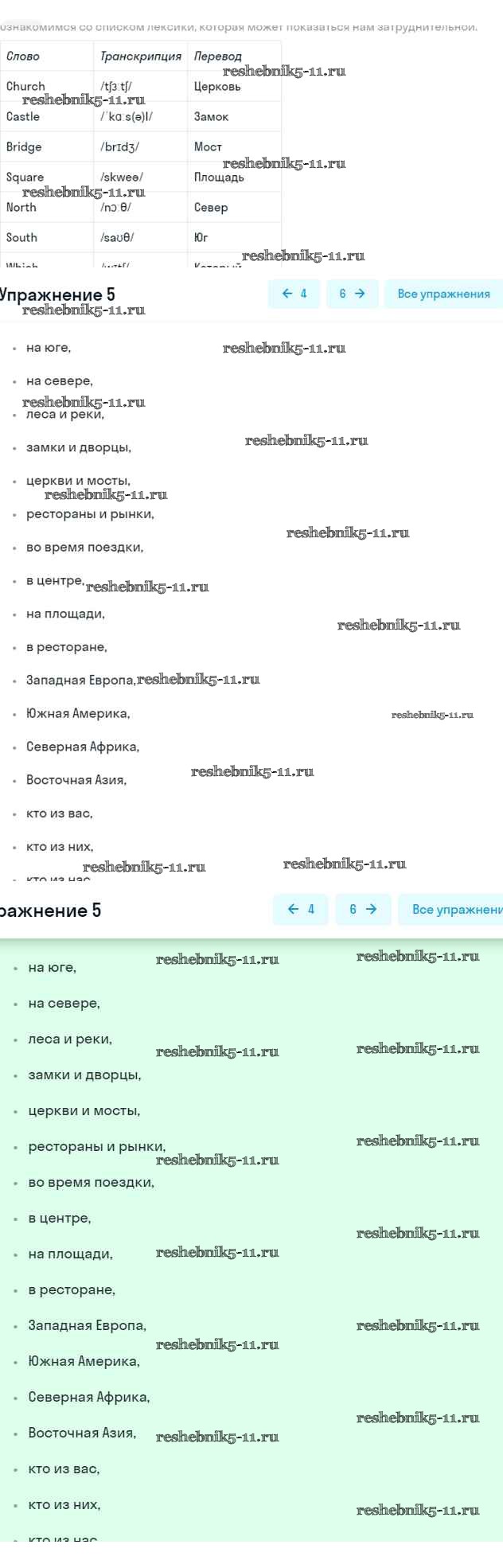 Готовая домашняя работа с ответами по Английскому языку за 5 класс Афанасьева, Михеева, Баранова Рабочая тетрадь Rainbow Дрофа 2017 ФГОС - Unit Five. From Place to Place 5