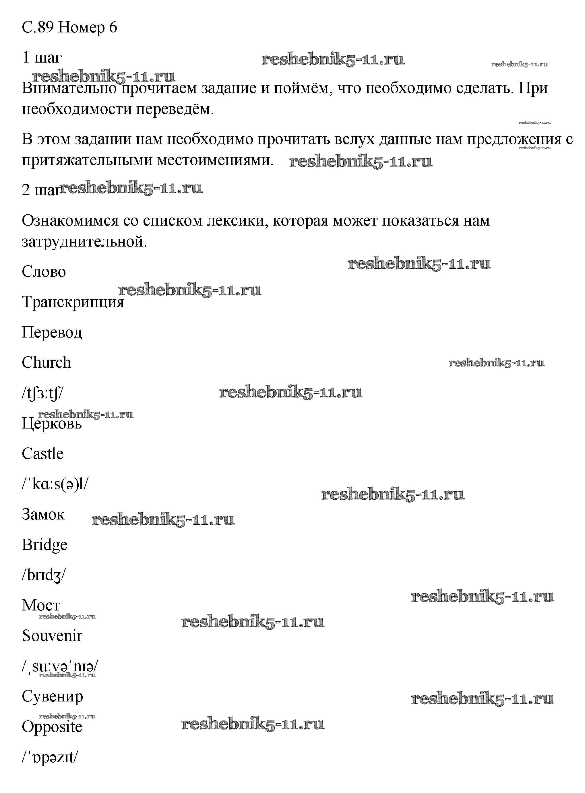Готовая домашняя работа с ответами по Английскому языку за 5 класс Афанасьева, Михеева, Баранова Рабочая тетрадь Rainbow Дрофа 2017 ФГОС - Unit Five. From Place to Place 6