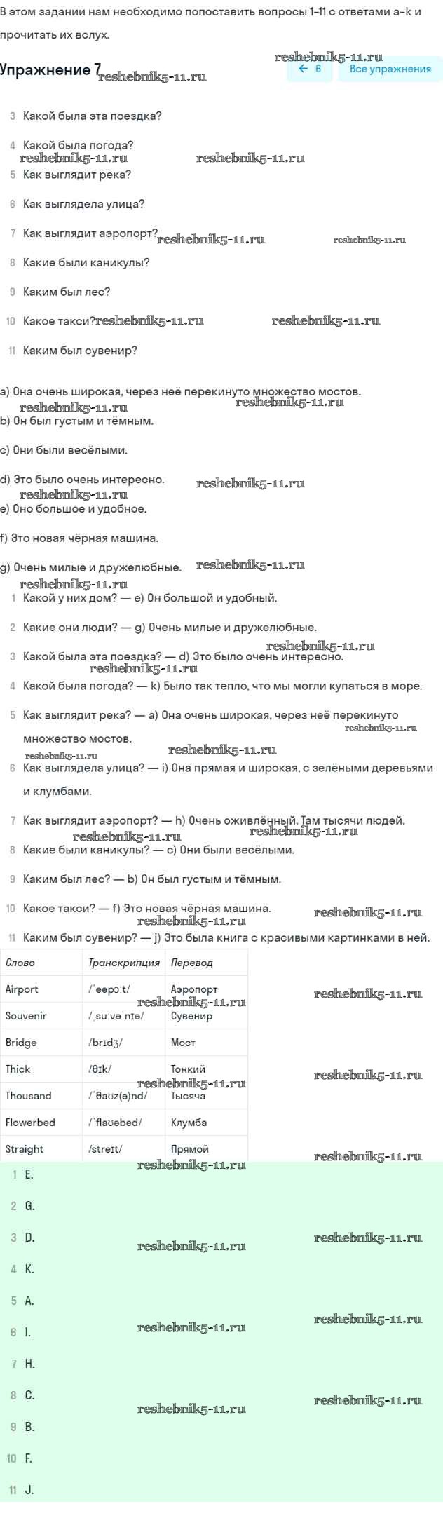 Готовая домашняя работа с ответами по Английскому языку за 5 класс Афанасьева, Михеева, Баранова Рабочая тетрадь Rainbow Дрофа 2017 ФГОС - Unit Five. From Place to Place 7