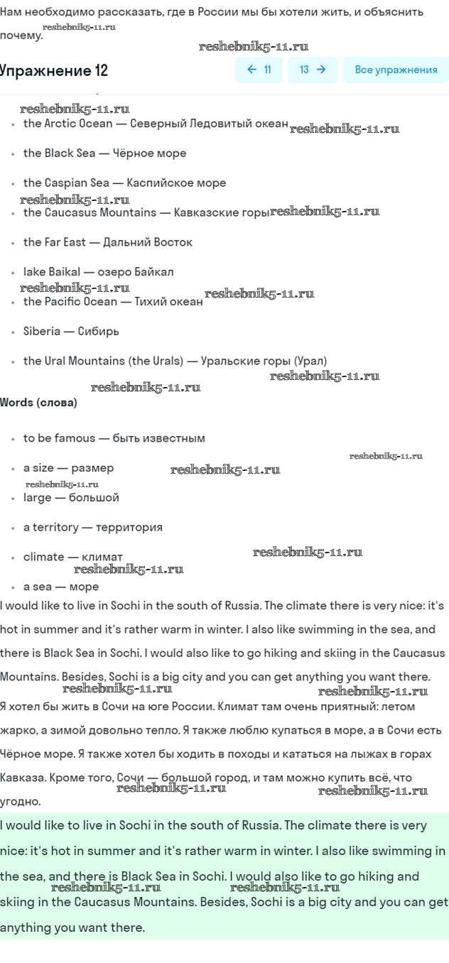 Готовая домашняя работа с ответами по Английскому языку за 5 класс Афанасьева, Михеева, Баранова Рабочая тетрадь Rainbow Дрофа 2017 ФГОС - Unit Six. About Russia 12