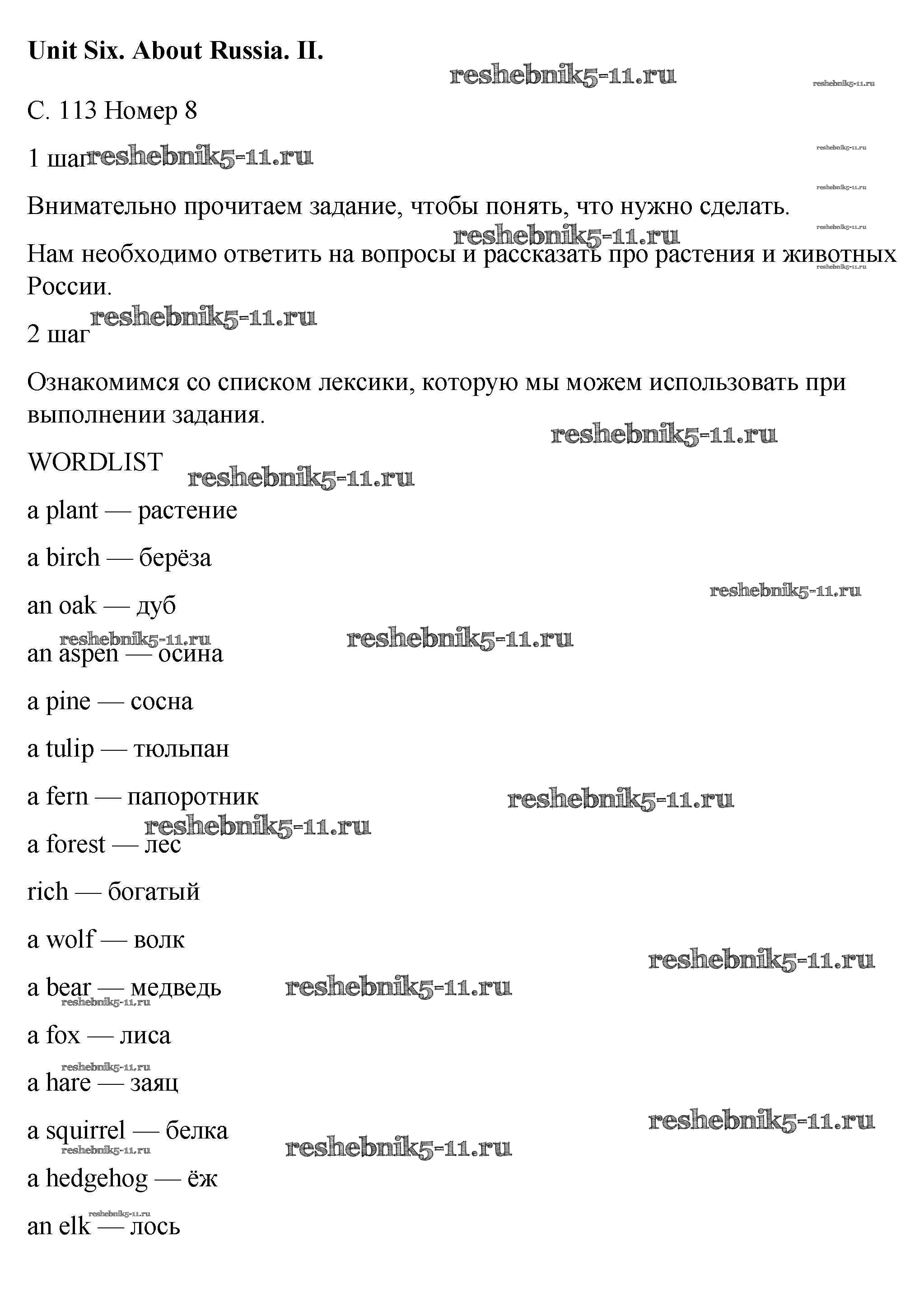 Готовая домашняя работа с ответами по Английскому языку за 5 класс Афанасьева, Михеева, Баранова Рабочая тетрадь Rainbow Дрофа 2017 ФГОС - Unit Six. About Russia 8