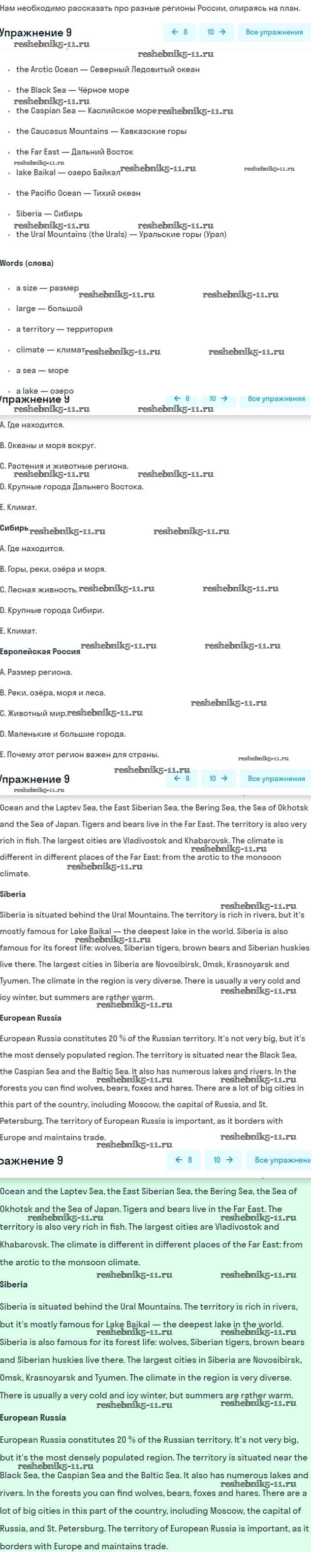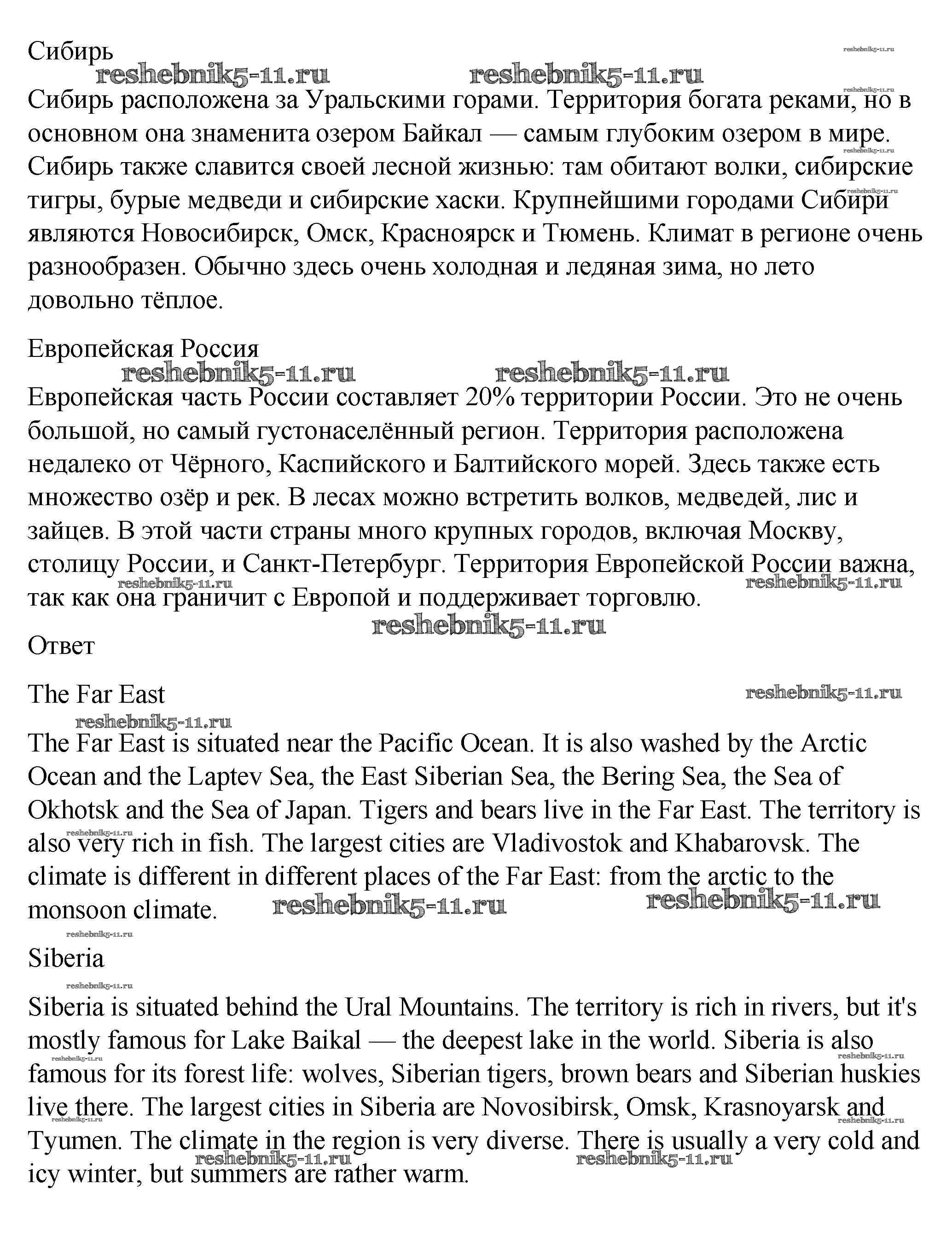 Готовая домашняя работа с ответами по Английскому языку за 5 класс Афанасьева, Михеева, Баранова Рабочая тетрадь Rainbow Дрофа 2017 ФГОС - Unit Six. About Russia 9