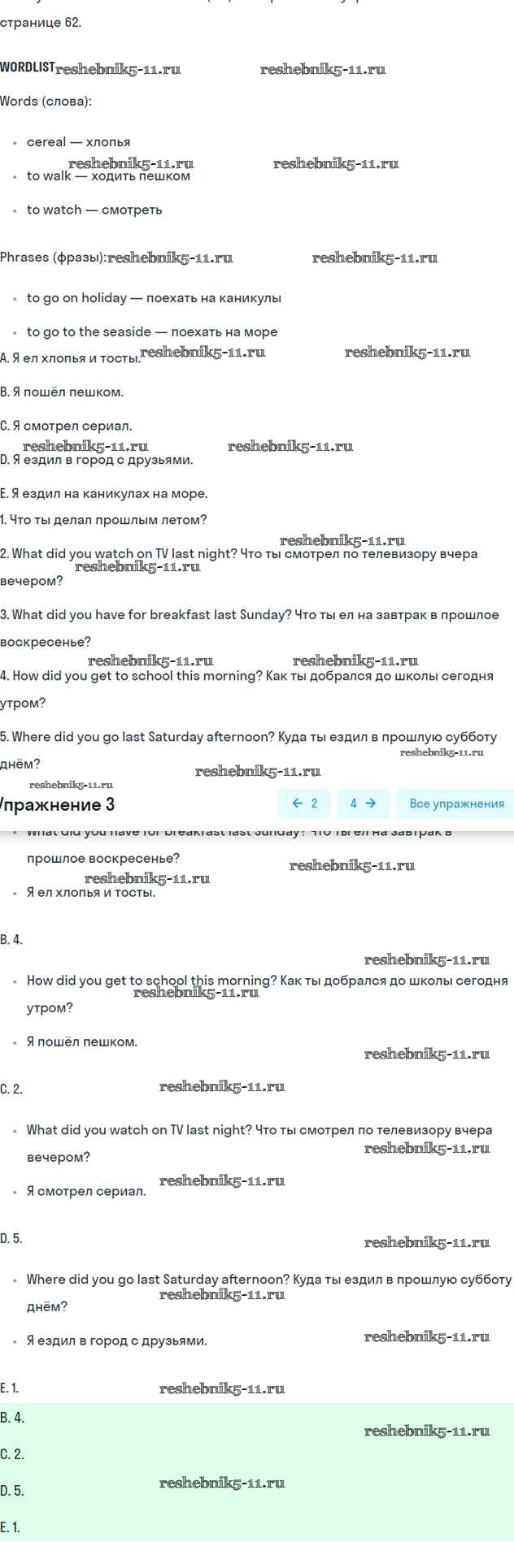 Готовая домашняя работа с ответами по Английскому языку за 5 класс Комарова, Ларионова Рабочая тетрадь Инновационная школа Русское слово 2022 ФГОС - Страницы 62