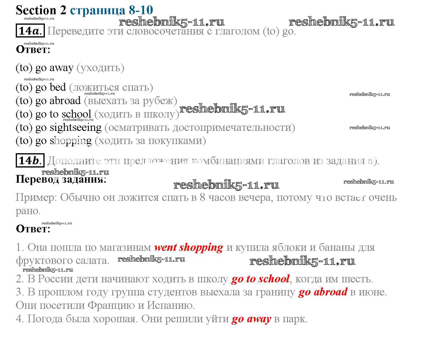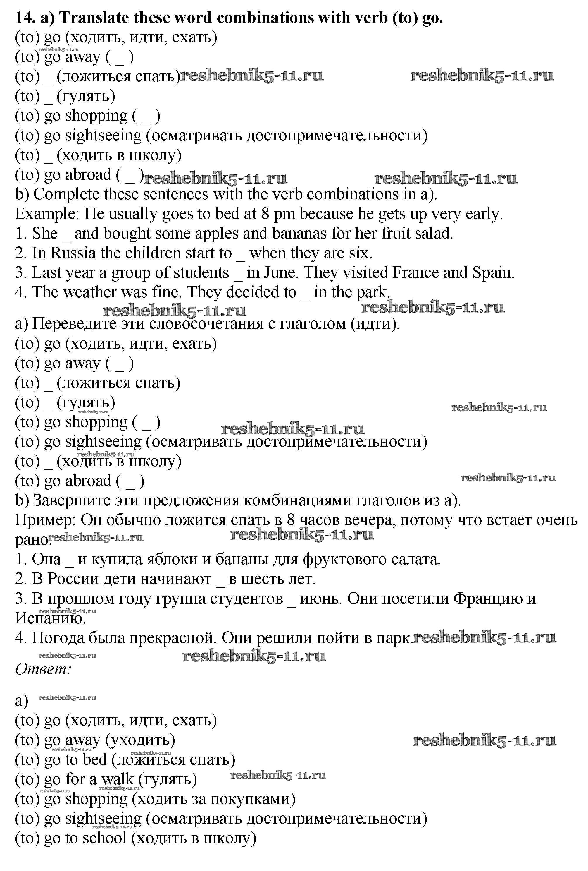 Готовая домашняя работа с ответами по Английскому языку за 5 класс Биболетова, Денисенко, Трубанева Рабочая тетрадь Enjoy English Дрофа 2019 ФГОС - Exercises 14