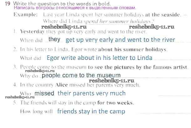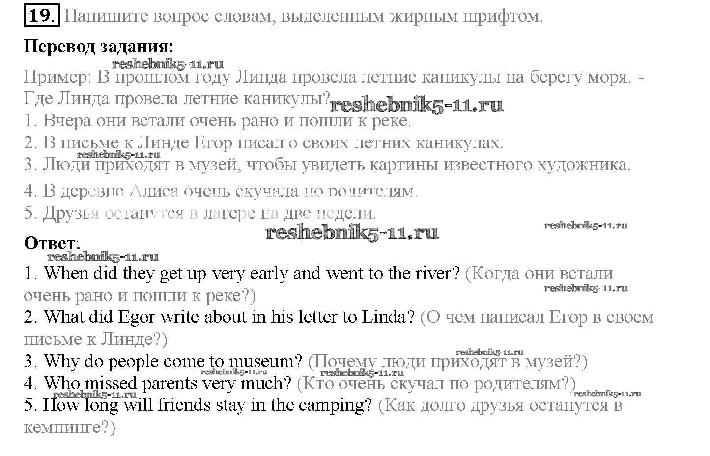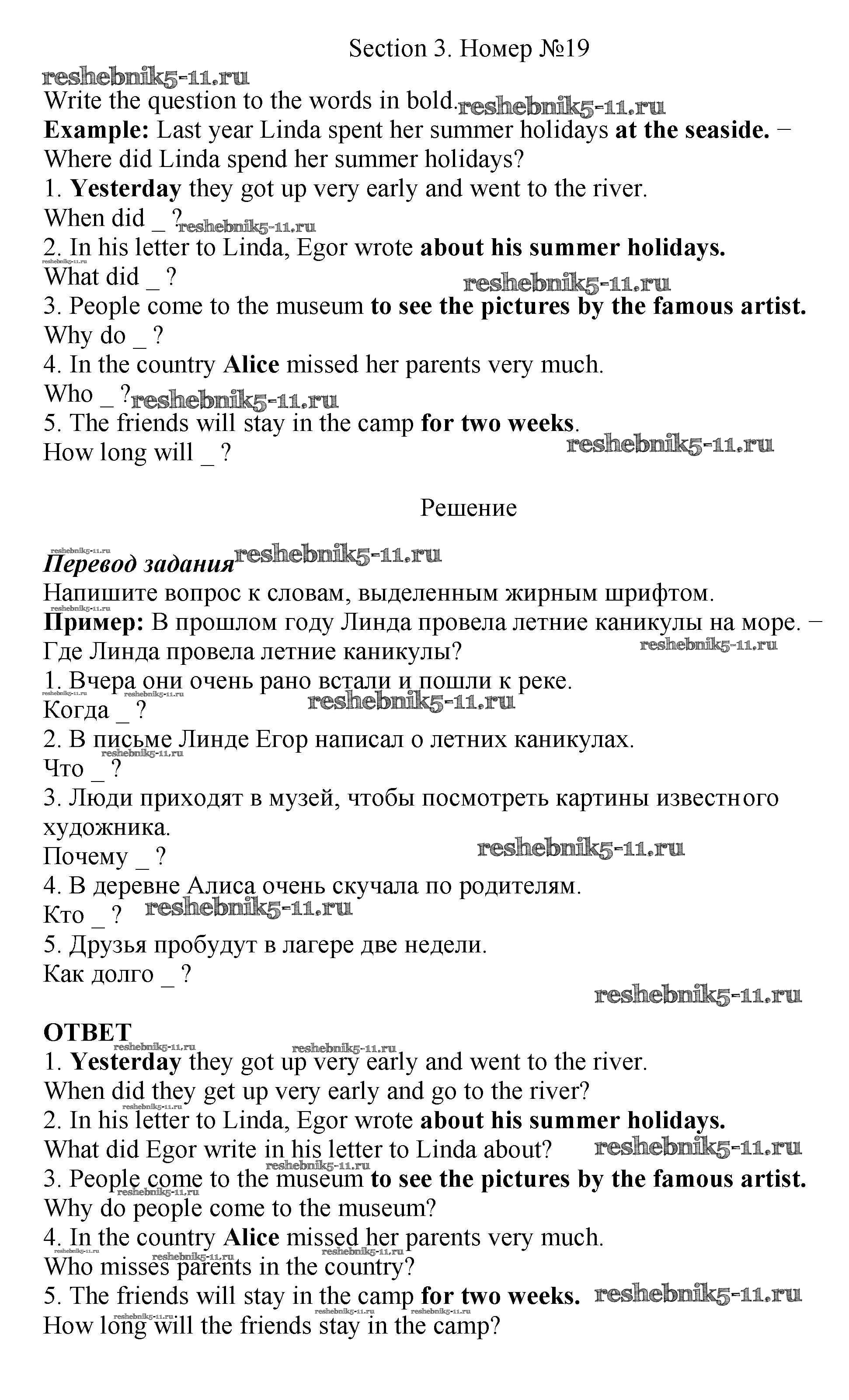 Готовая домашняя работа с ответами по Английскому языку за 5 класс Биболетова, Денисенко, Трубанева Рабочая тетрадь Enjoy English Дрофа 2019 ФГОС - Exercises 19
