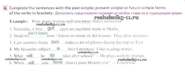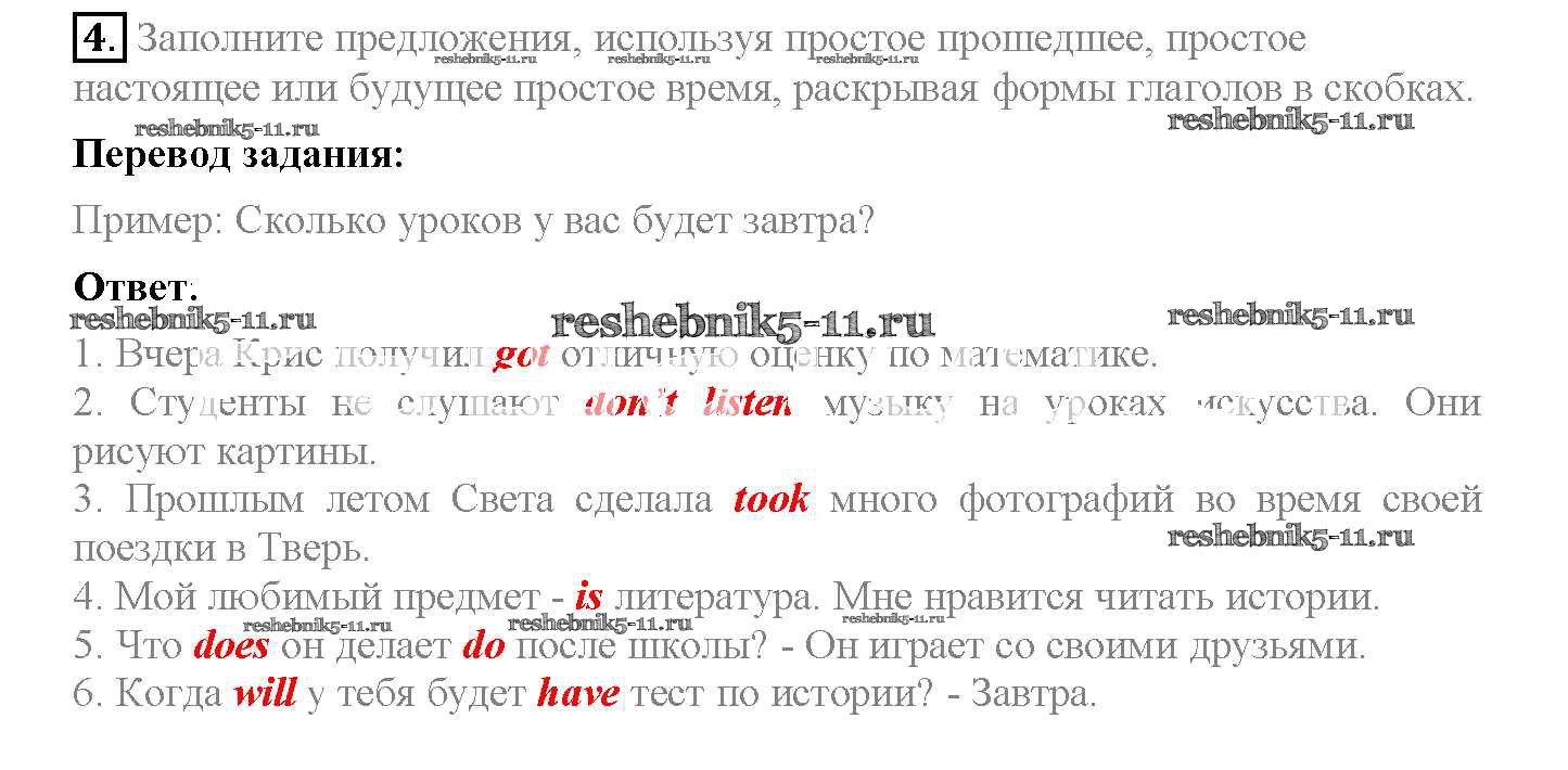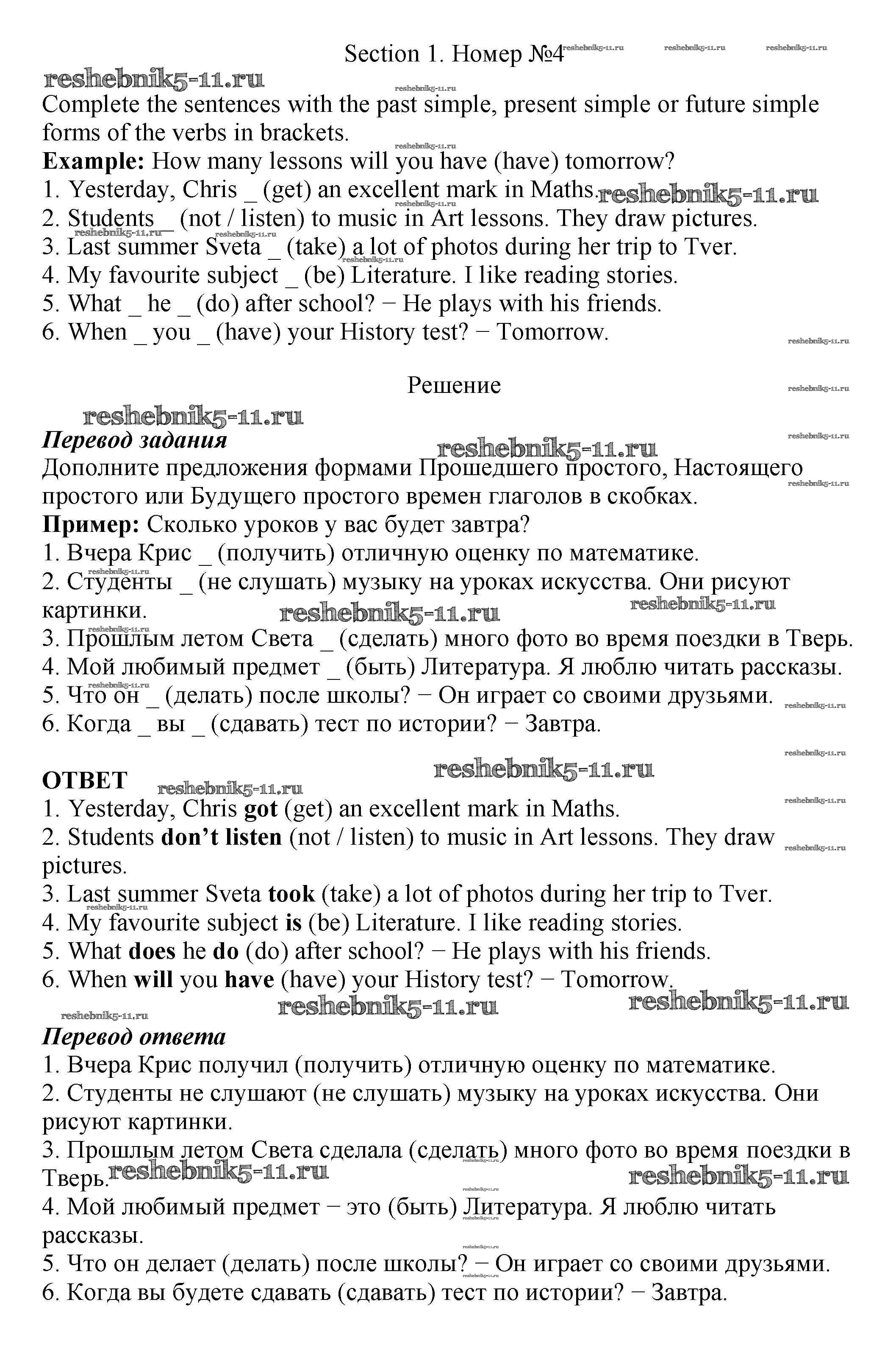 Готовая домашняя работа с ответами по Английскому языку за 5 класс Биболетова, Денисенко, Трубанева Рабочая тетрадь Enjoy English Дрофа 2019 ФГОС - Exercises 4