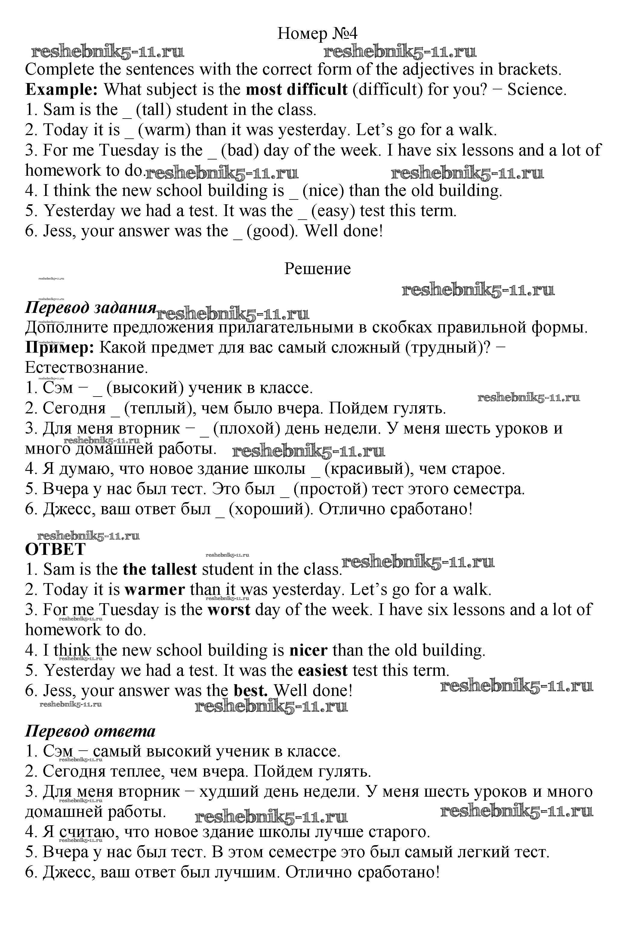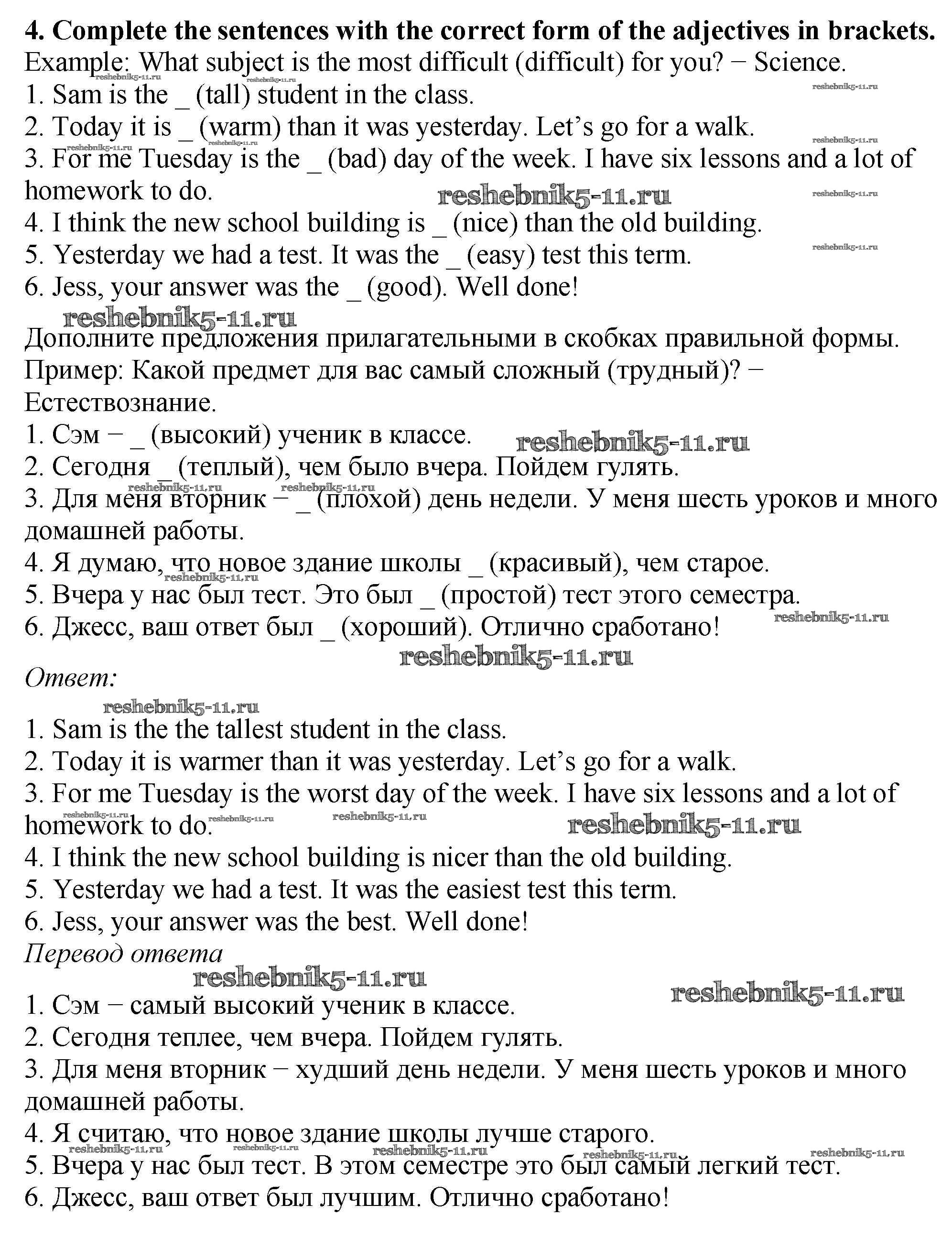 Готовая домашняя работа с ответами по Английскому языку за 5 класс Биболетова, Денисенко, Трубанева Рабочая тетрадь Enjoy English Дрофа 2019 ФГОС - Test yourself 2 4