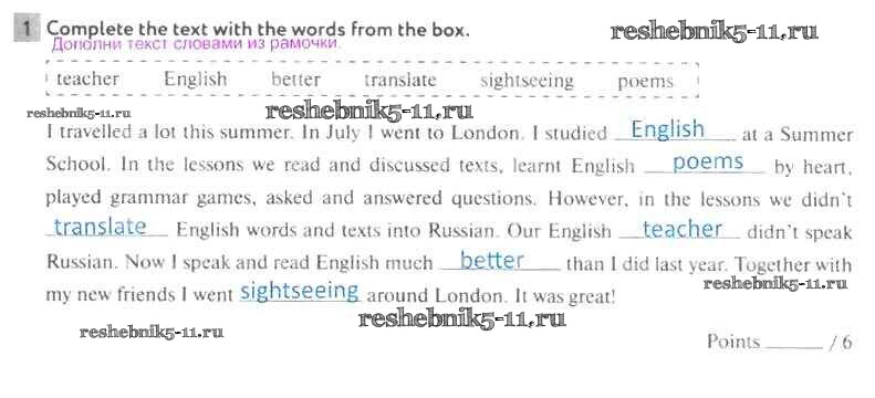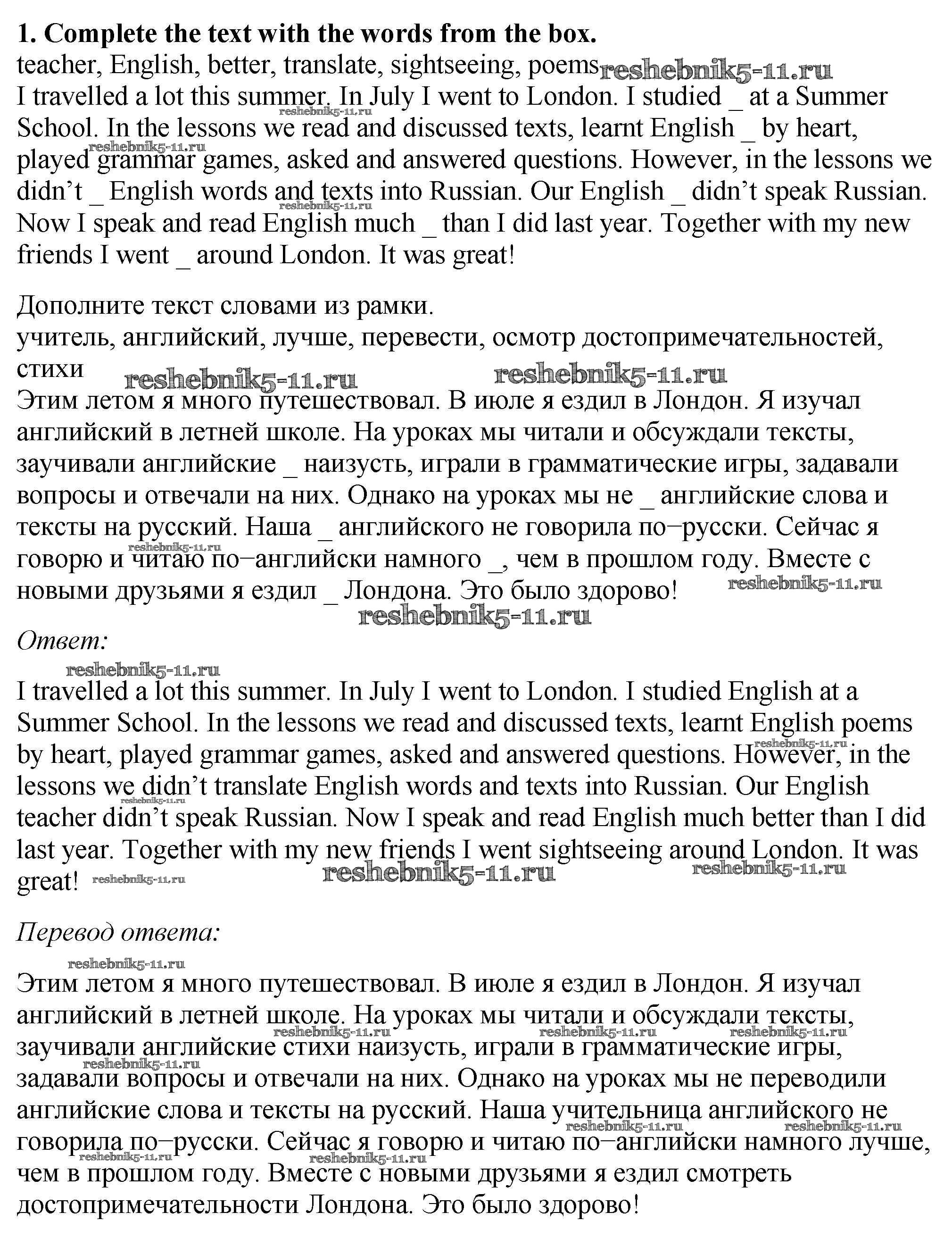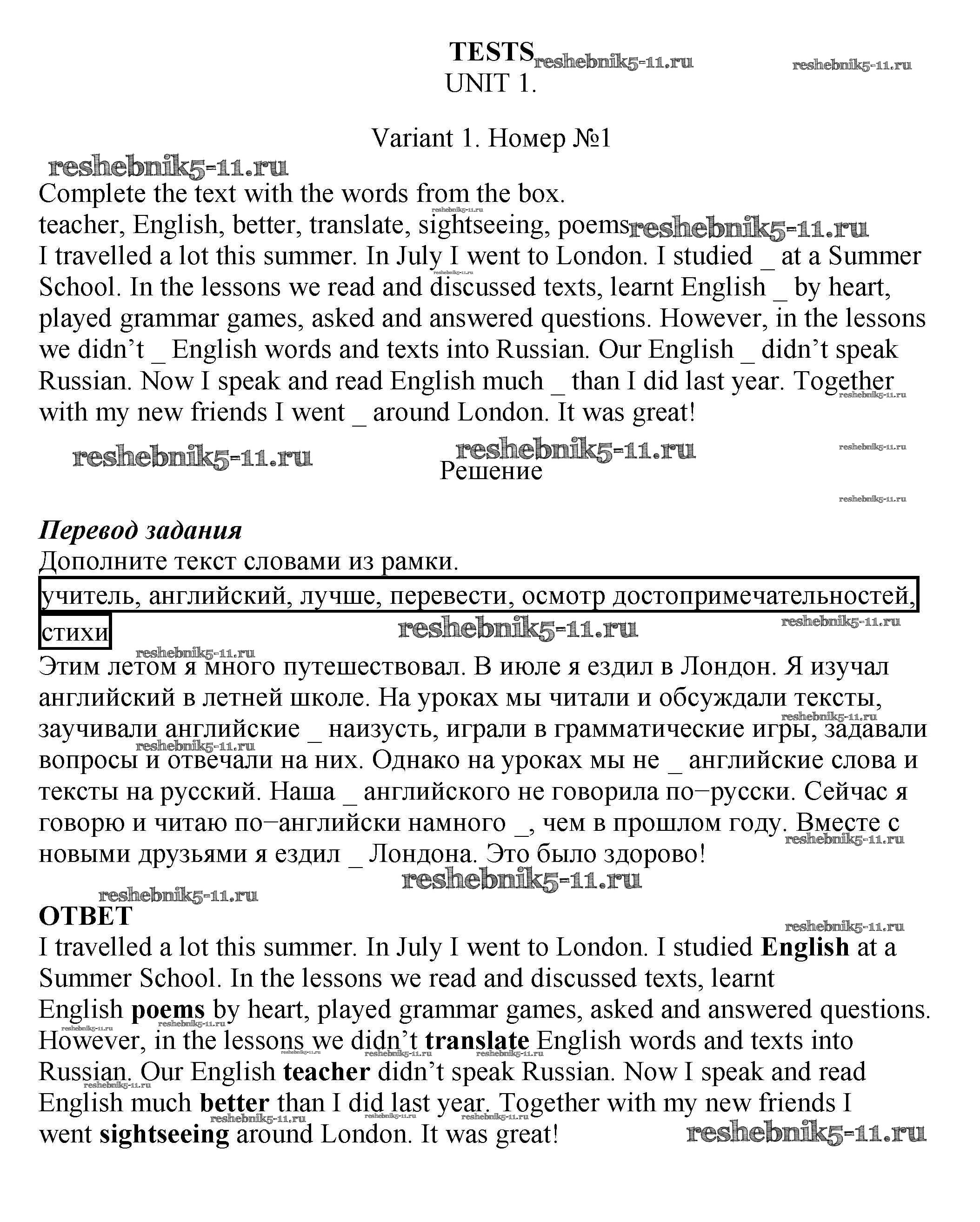Готовая домашняя работа с ответами по Английскому языку за 5 класс Биболетова, Денисенко, Трубанева Рабочая тетрадь Enjoy English Дрофа 2019 ФГОС - Variant 1 1