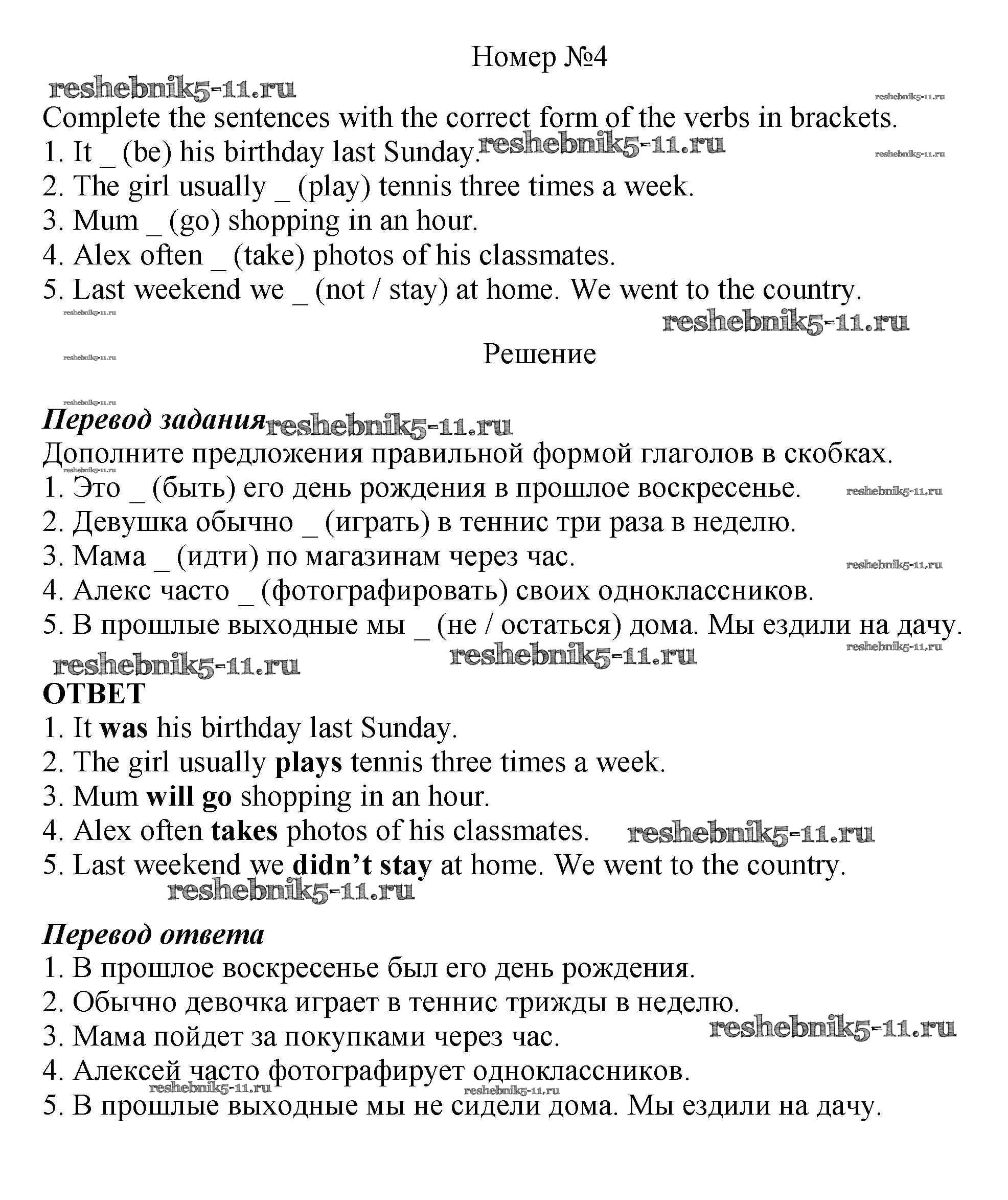 Готовая домашняя работа с ответами по Английскому языку за 5 класс Биболетова, Денисенко, Трубанева Рабочая тетрадь Enjoy English Дрофа 2019 ФГОС - Variant 1 4