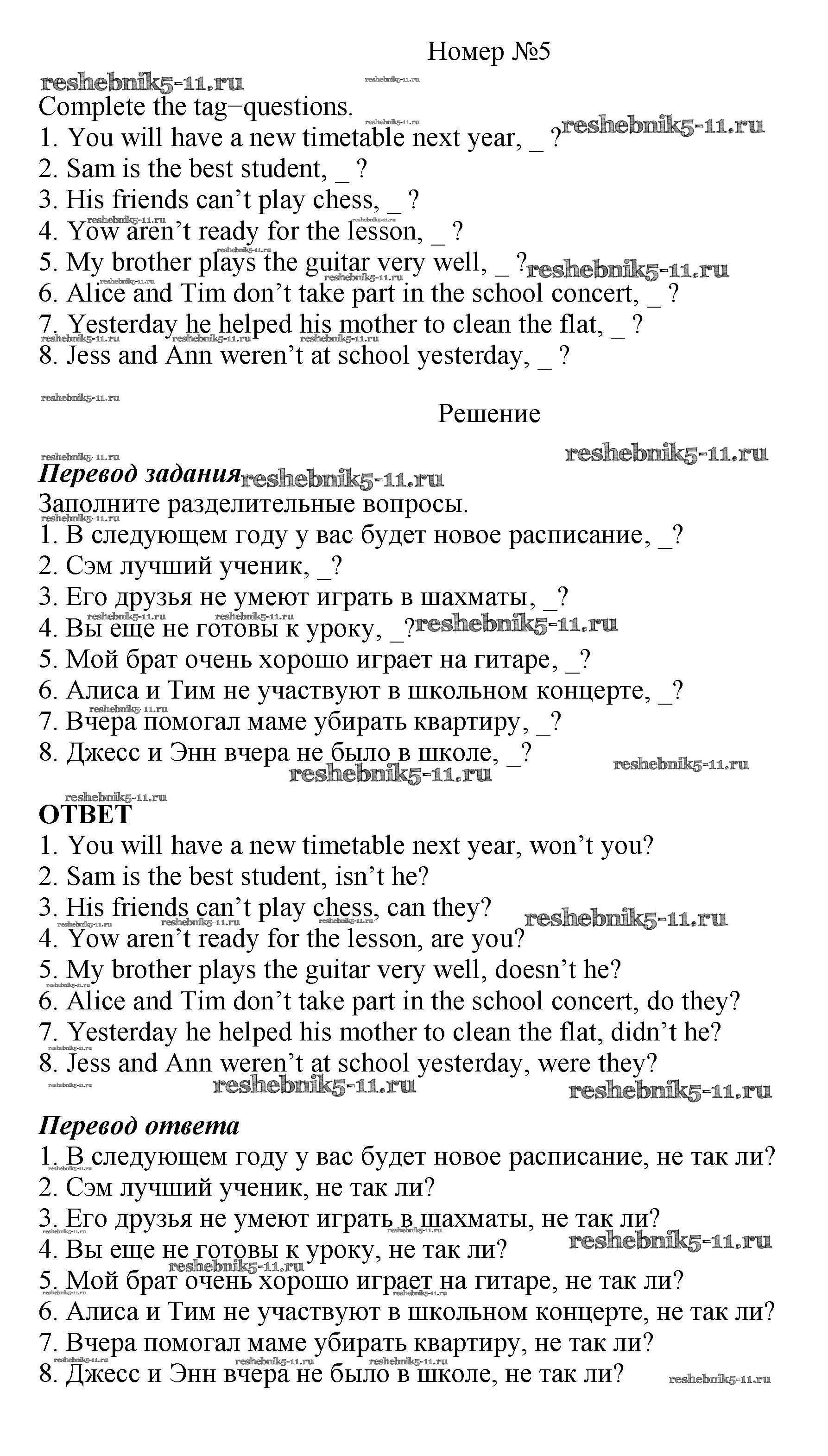Готовая домашняя работа с ответами по Английскому языку за 5 класс Биболетова, Денисенко, Трубанева Рабочая тетрадь Enjoy English Дрофа 2019 ФГОС - Variant 1 5
