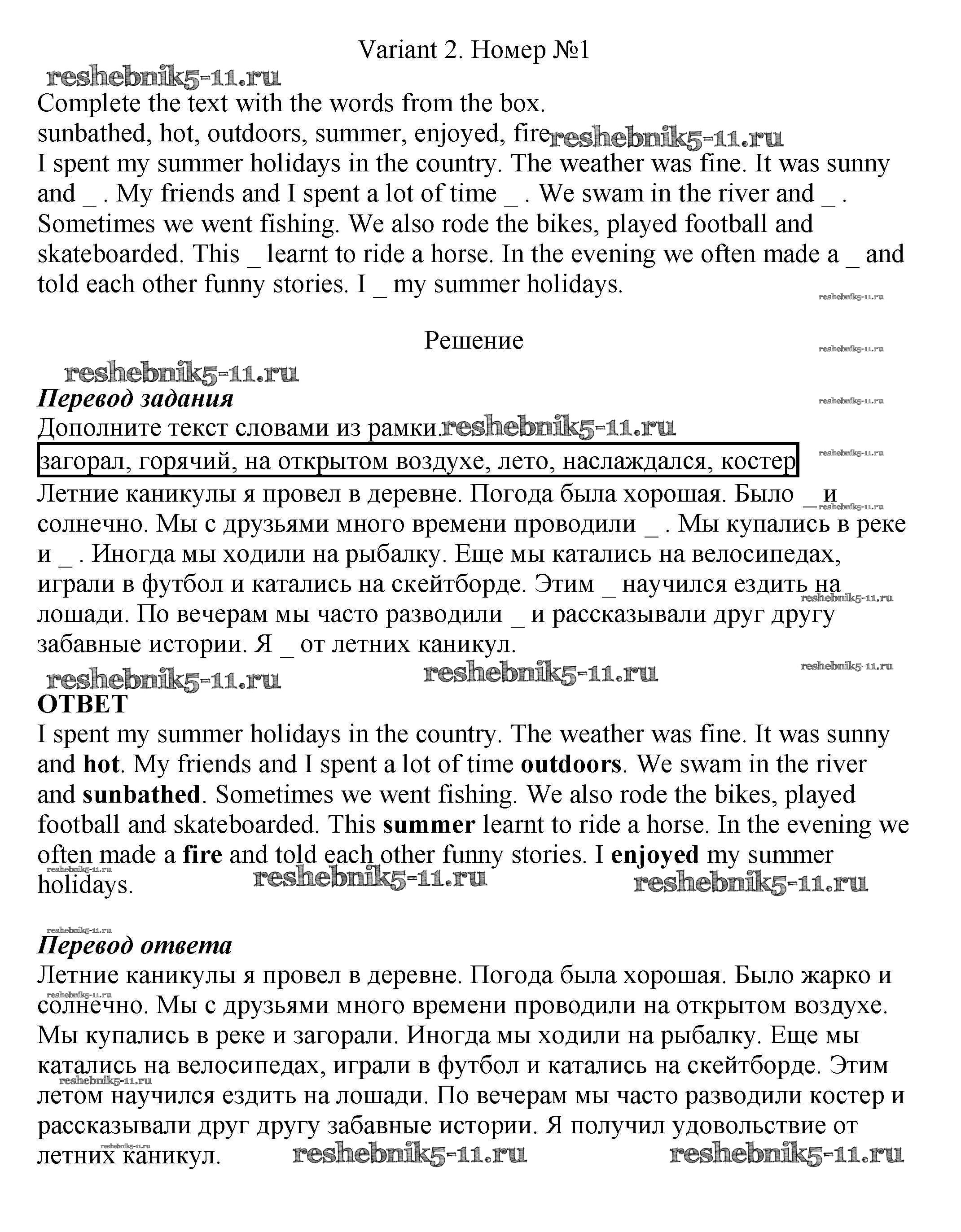 Готовая домашняя работа с ответами по Английскому языку за 5 класс Биболетова, Денисенко, Трубанева Рабочая тетрадь Enjoy English Дрофа 2019 ФГОС - Variant 2 1