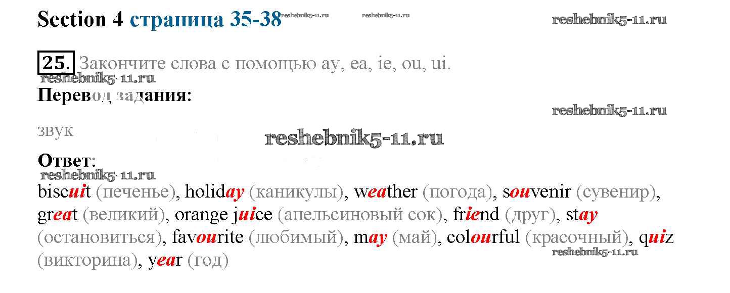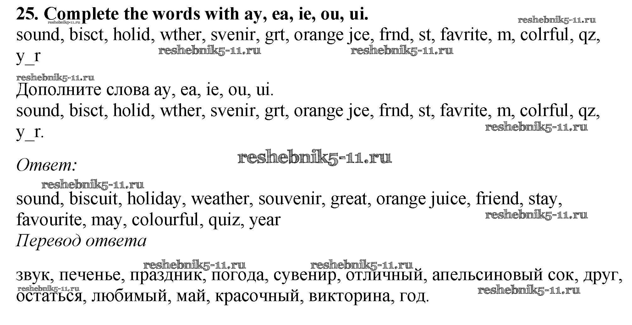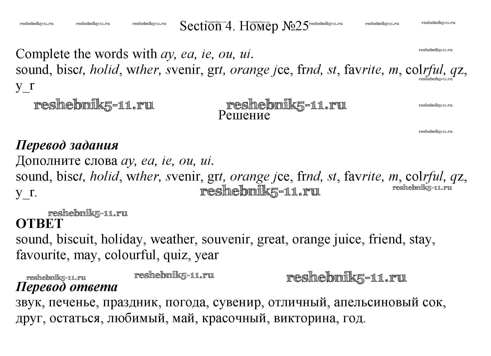 Готовая домашняя работа с ответами по Английскому языку за 5 класс Биболетова, Денисенко, Трубанева Рабочая тетрадь Enjoy English Дрофа 2019 ФГОС - Exercises 25