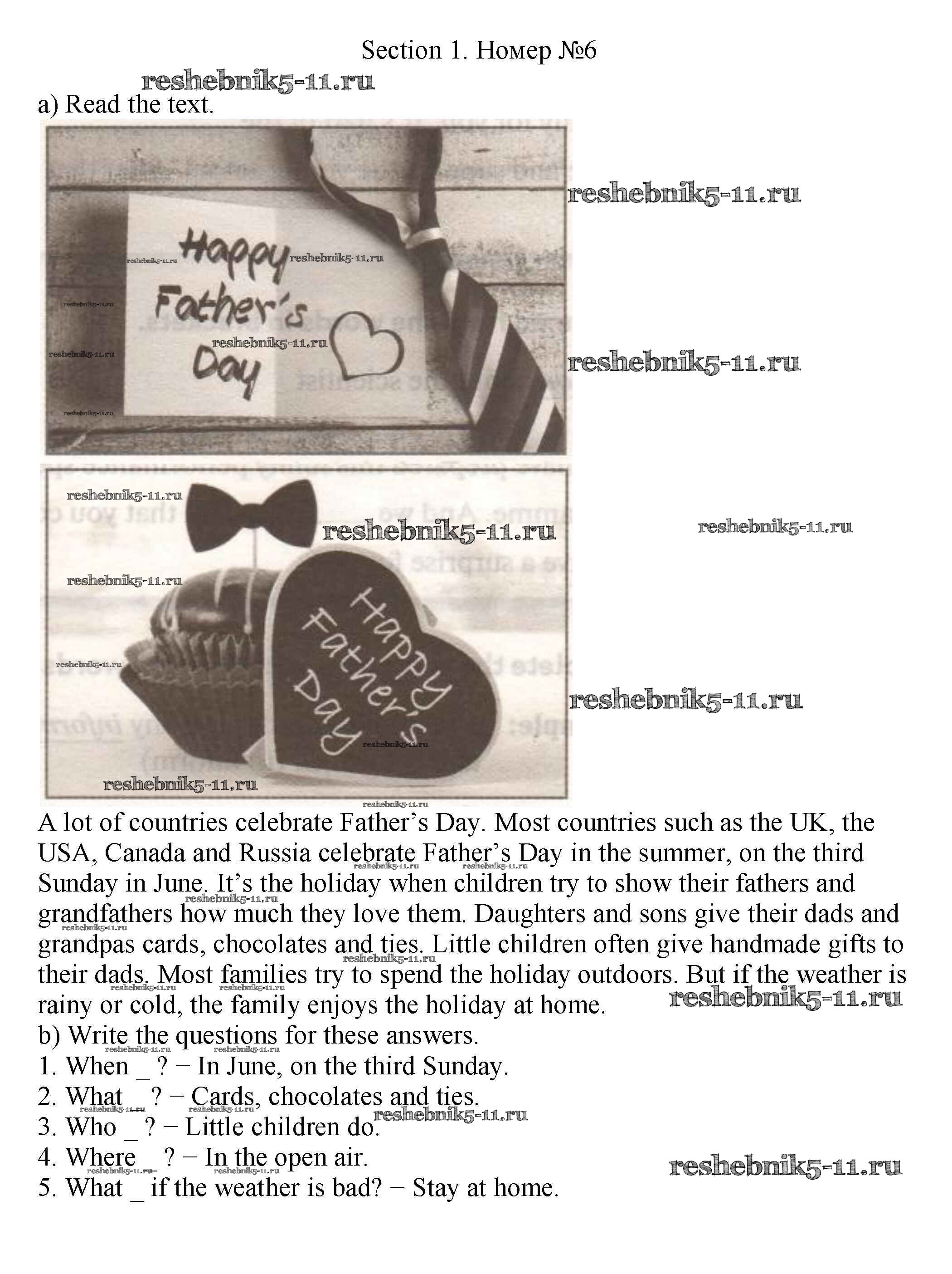 Готовая домашняя работа с ответами по Английскому языку за 5 класс Биболетова, Денисенко, Трубанева Рабочая тетрадь Enjoy English Дрофа 2019 ФГОС - Exercises 6