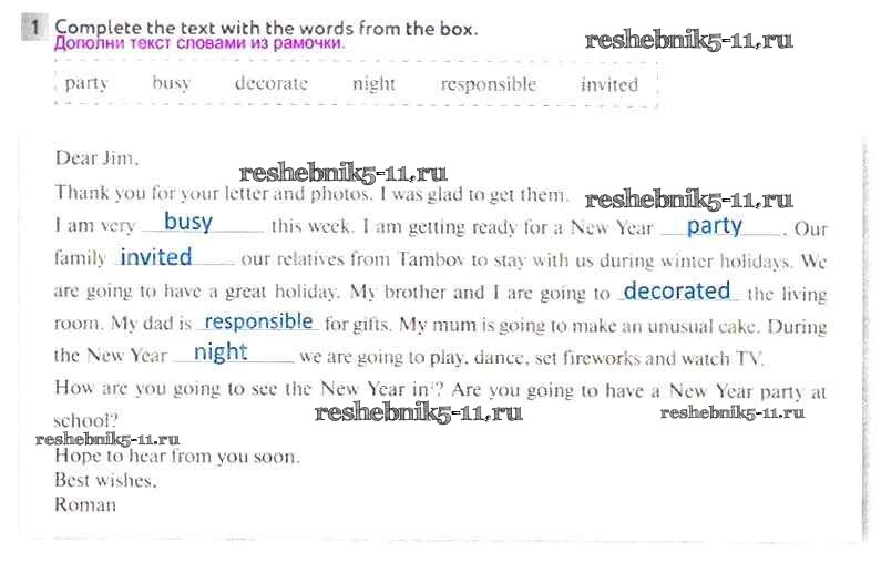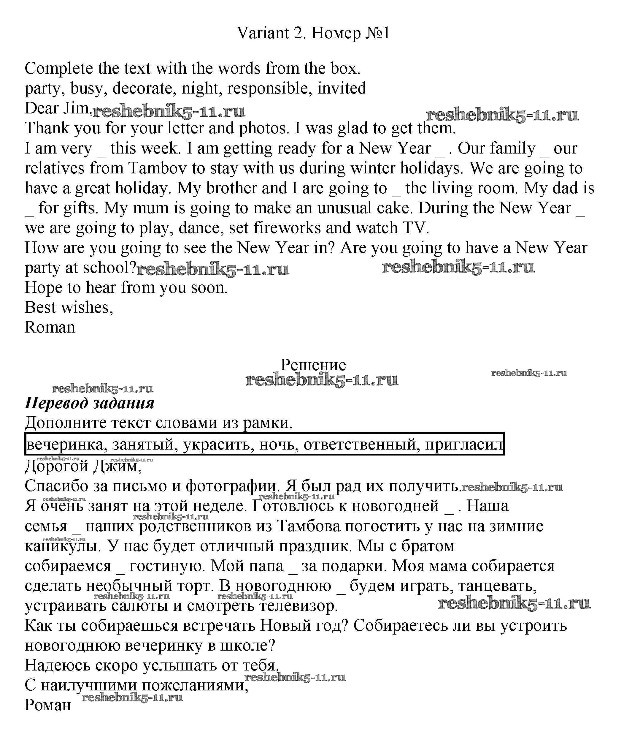 Готовая домашняя работа с ответами по Английскому языку за 5 класс Биболетова, Денисенко, Трубанева Рабочая тетрадь Enjoy English Дрофа 2019 ФГОС - Variant 2 1