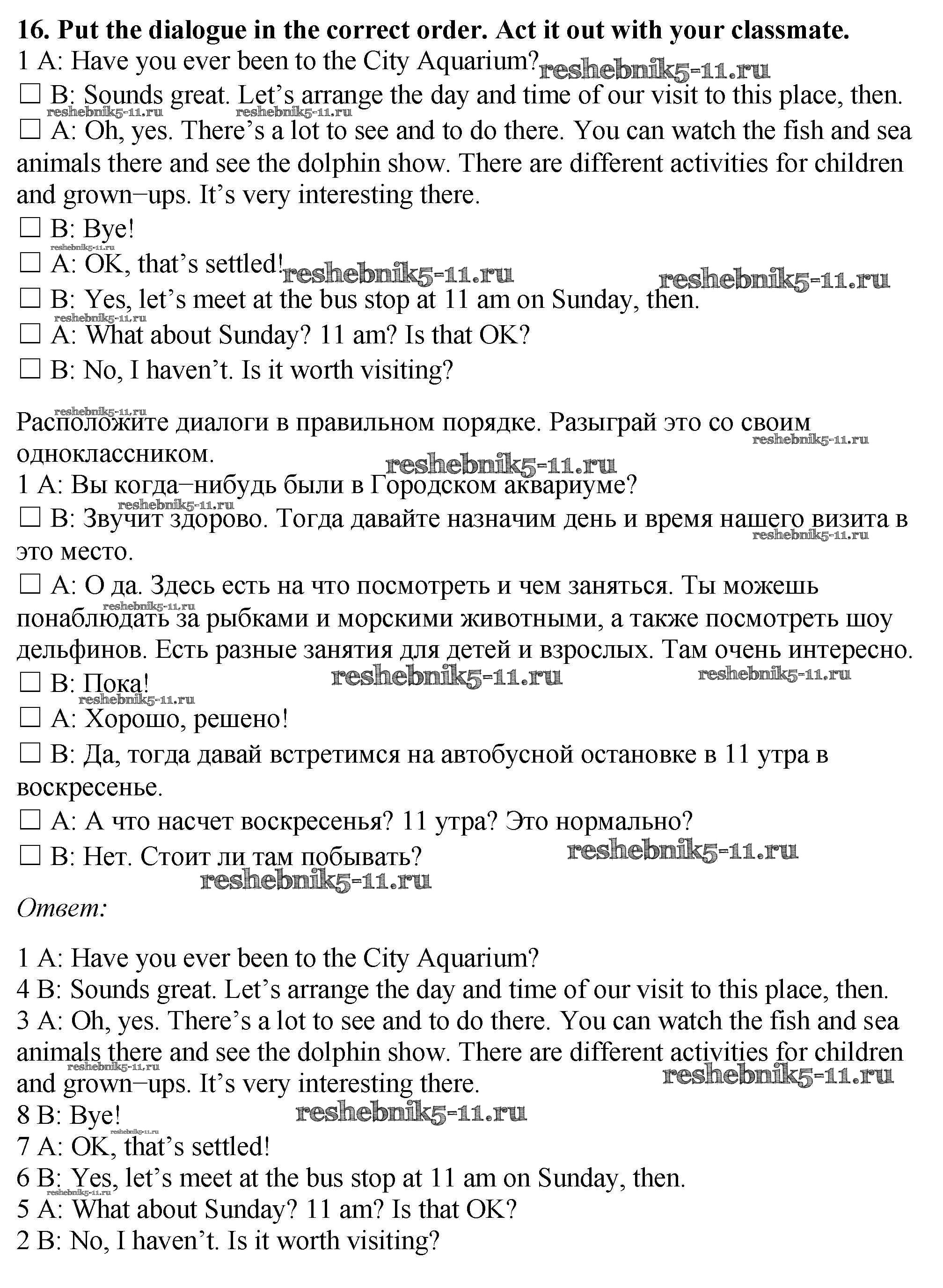 Готовая домашняя работа с ответами по Английскому языку за 5 класс Биболетова, Денисенко, Трубанева Рабочая тетрадь Enjoy English Дрофа 2019 ФГОС - Exercises 16