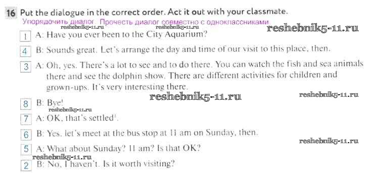 Английский язык за 5 класс Биболетова Рабочая тетрадь Enjoy English Дрофа exercise 16