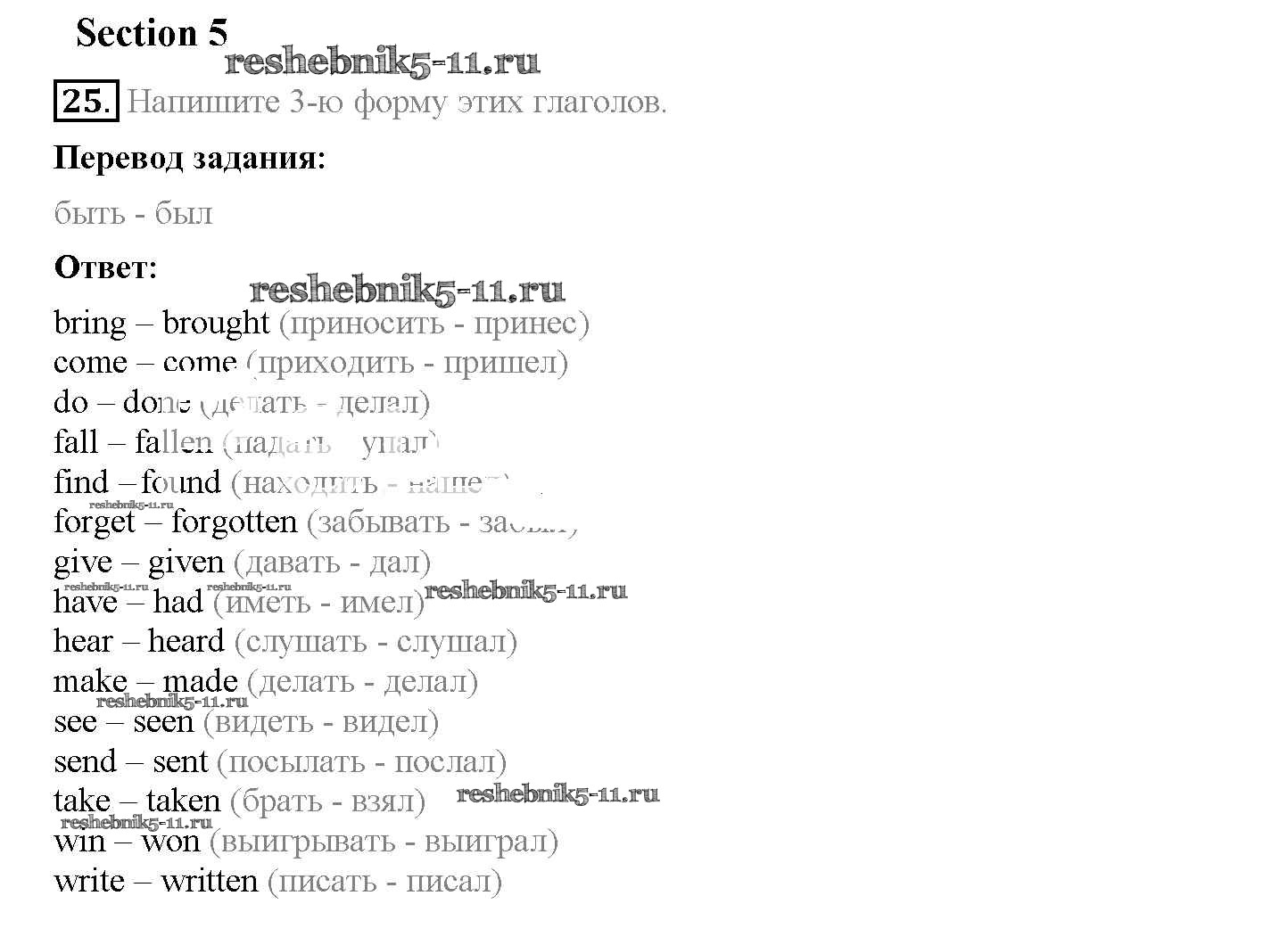 Готовая домашняя работа с ответами по Английскому языку за 5 класс Биболетова, Денисенко, Трубанева Рабочая тетрадь Enjoy English Дрофа 2019 ФГОС - Exercises 25