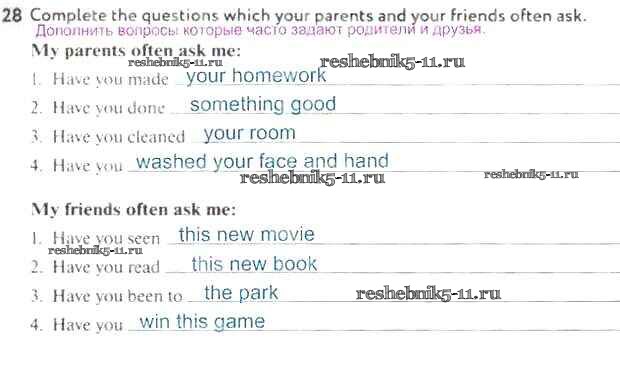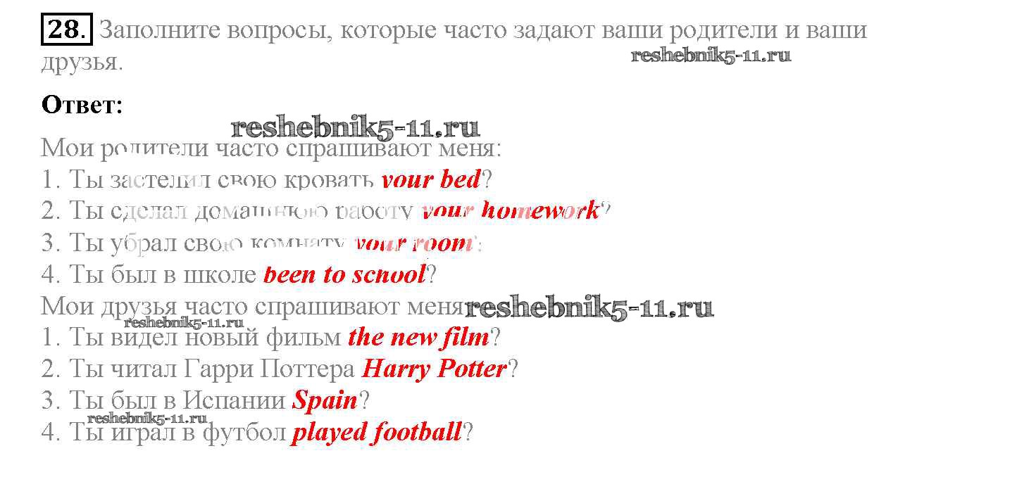 Готовая домашняя работа с ответами по Английскому языку за 5 класс Биболетова, Денисенко, Трубанева Рабочая тетрадь Enjoy English Дрофа 2019 ФГОС - Exercises 28