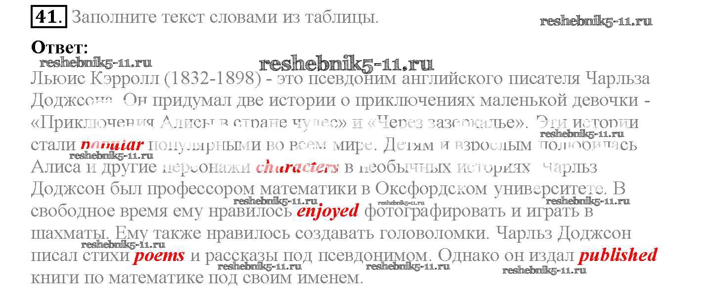 Готовая домашняя работа с ответами по Английскому языку за 5 класс Биболетова, Денисенко, Трубанева Рабочая тетрадь Enjoy English Дрофа 2019 ФГОС - Exercises 41