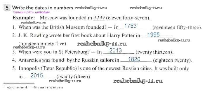 Готовая домашняя работа с ответами по Английскому языку за 5 класс Биболетова, Денисенко, Трубанева Рабочая тетрадь Enjoy English Дрофа 2019 ФГОС - Exercises 5