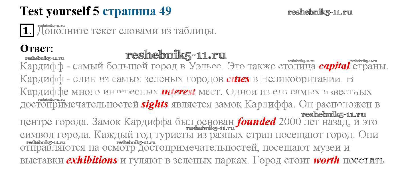 Готовая домашняя работа с ответами по Английскому языку за 5 класс Биболетова, Денисенко, Трубанева Рабочая тетрадь Enjoy English Дрофа 2019 ФГОС - Test yourself 5 1