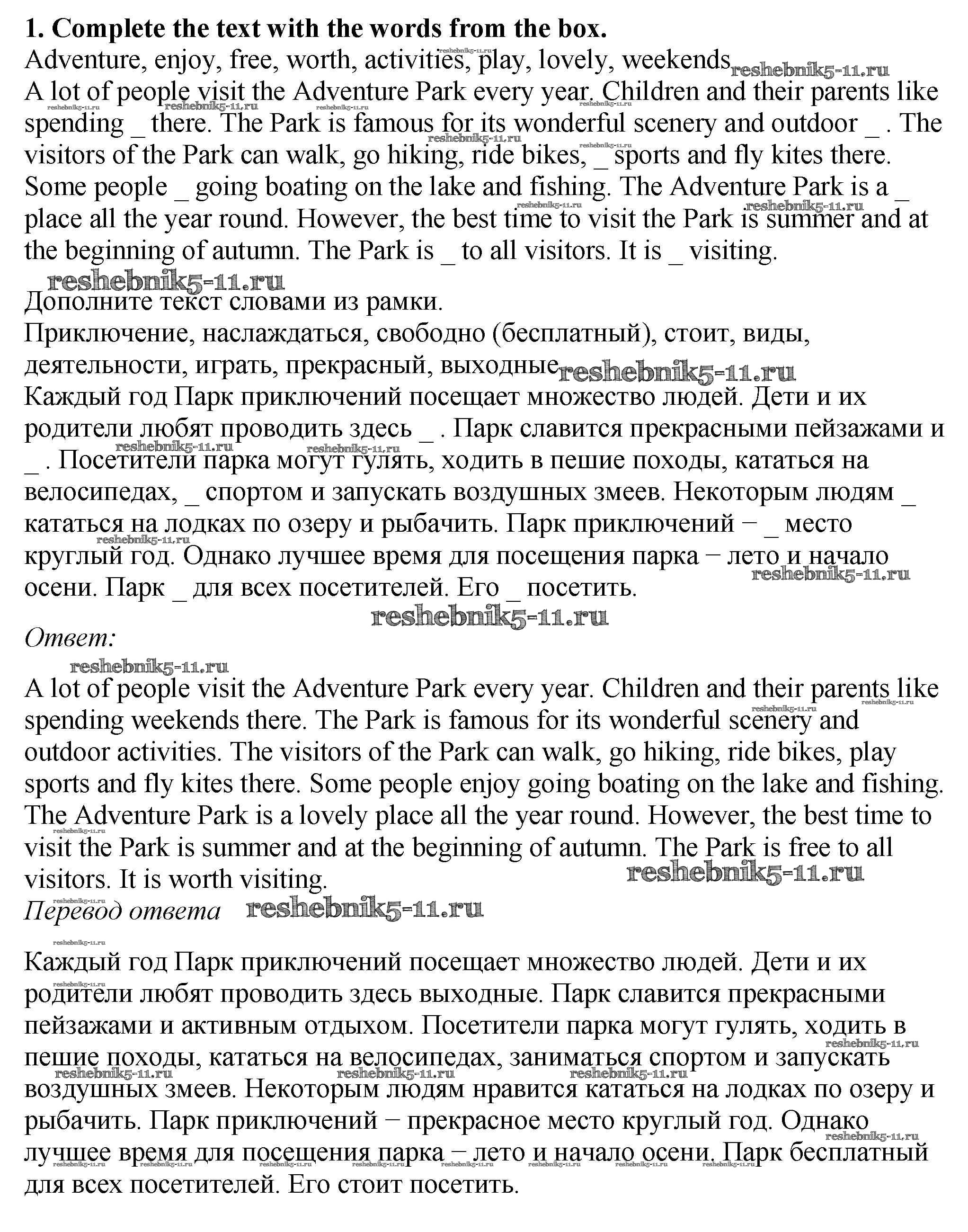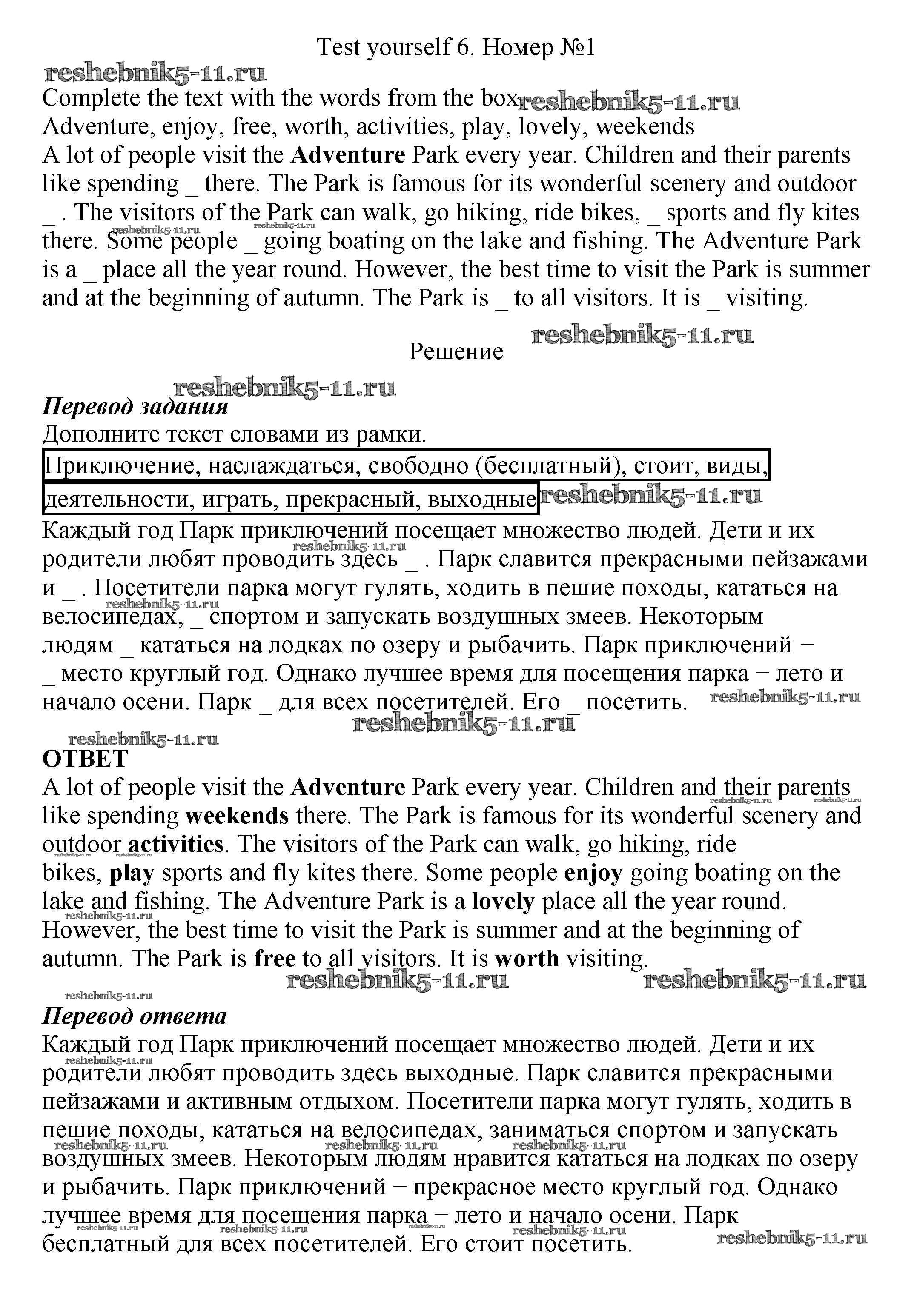 Готовая домашняя работа с ответами по Английскому языку за 5 класс Биболетова, Денисенко, Трубанева Рабочая тетрадь Enjoy English Дрофа 2019 ФГОС - Test yourself 6 1