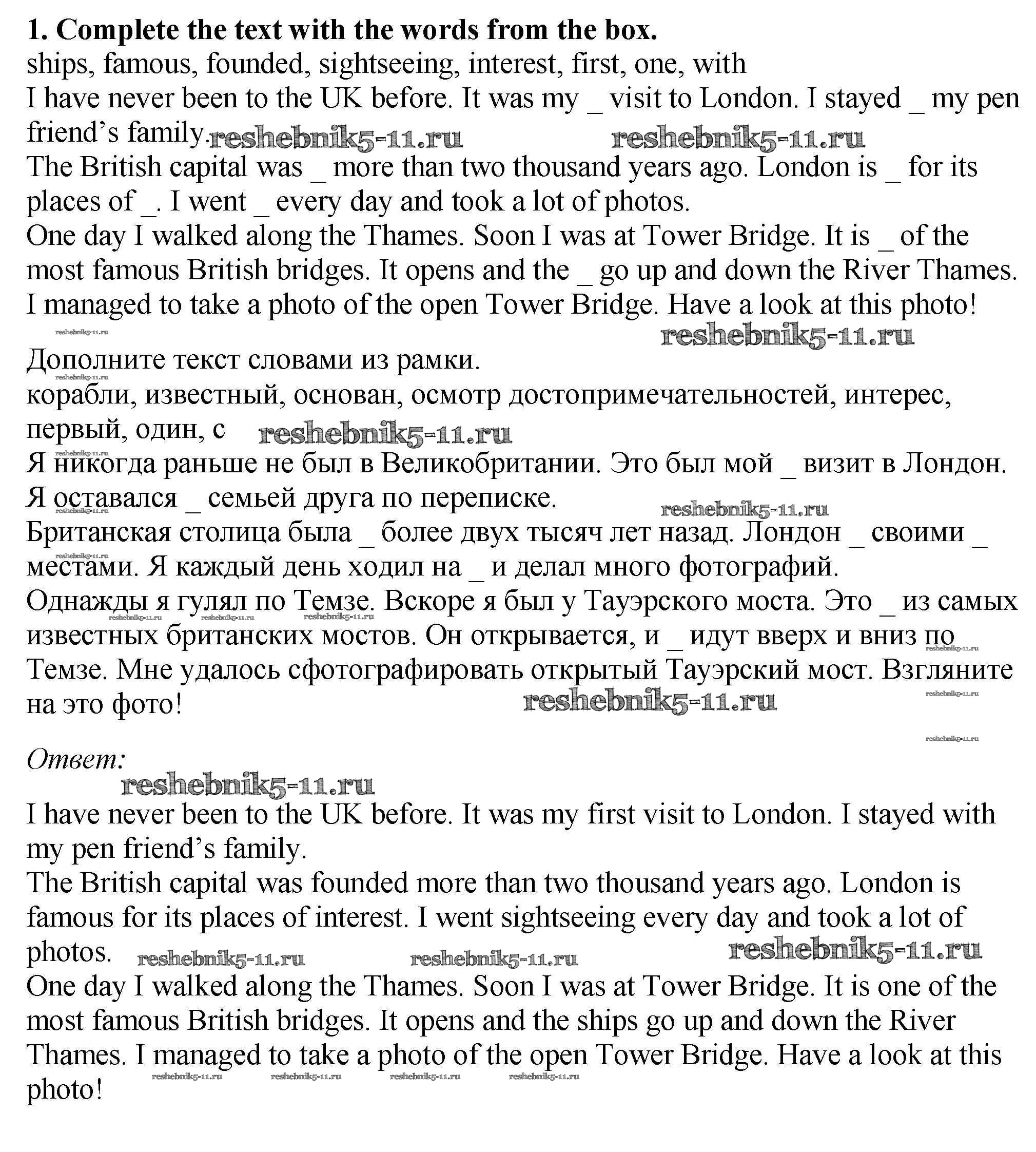 Готовая домашняя работа с ответами по Английскому языку за 5 класс Биболетова, Денисенко, Трубанева Рабочая тетрадь Enjoy English Дрофа 2019 ФГОС - Variant 1 1