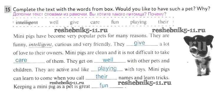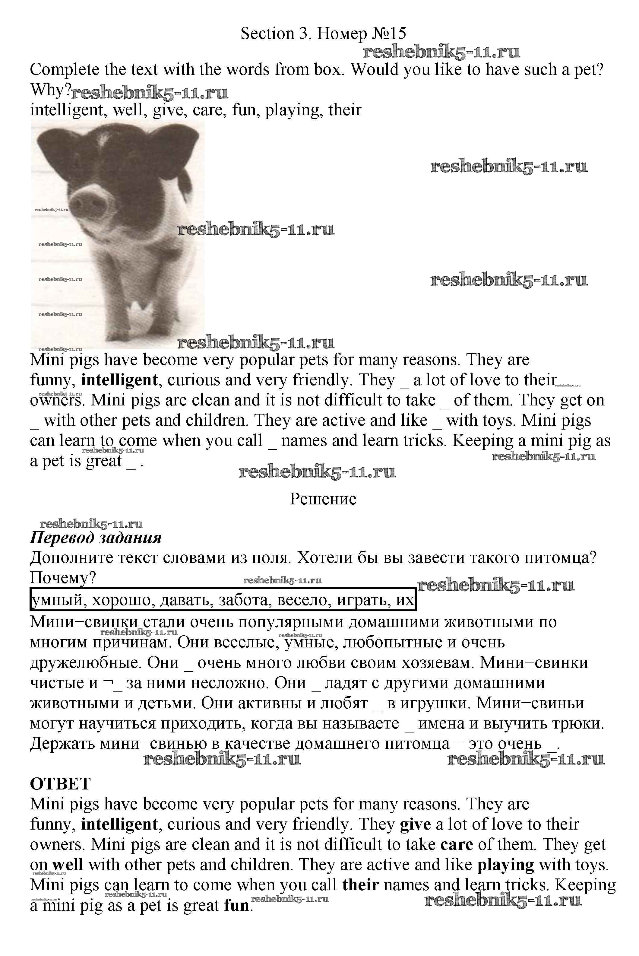 Готовая домашняя работа с ответами по Английскому языку за 5 класс Биболетова, Денисенко, Трубанева Рабочая тетрадь Enjoy English Дрофа 2019 ФГОС - Exercises 15
