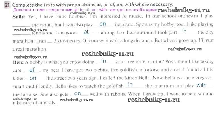 Готовая домашняя работа с ответами по Английскому языку за 5 класс Биболетова, Денисенко, Трубанева Рабочая тетрадь Enjoy English Дрофа 2019 ФГОС - Exercises 21