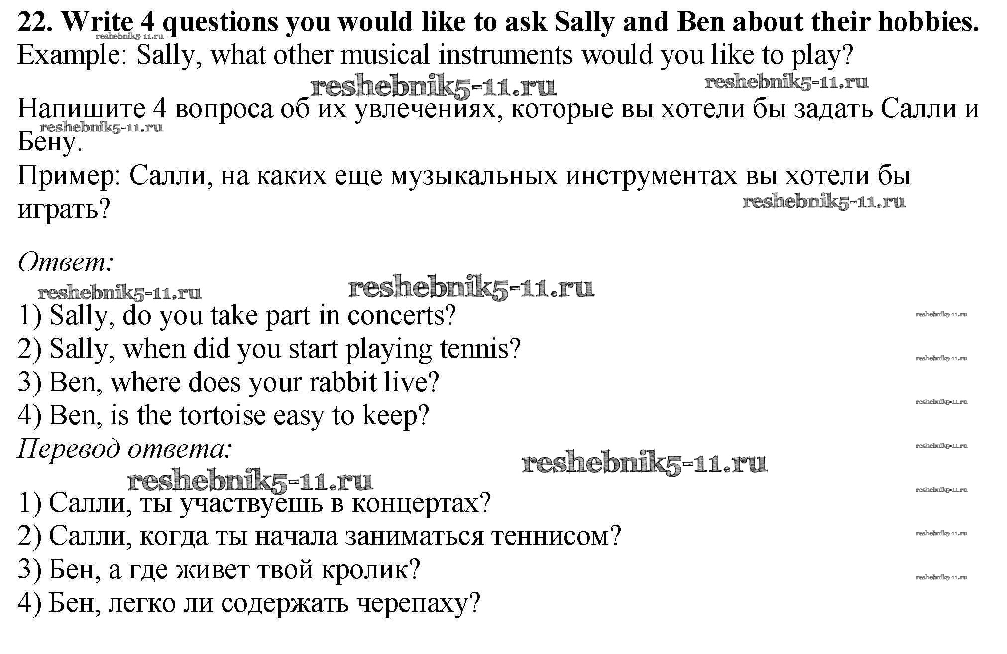 Готовая домашняя работа с ответами по Английскому языку за 5 класс Биболетова, Денисенко, Трубанева Рабочая тетрадь Enjoy English Дрофа 2019 ФГОС - Exercises 22