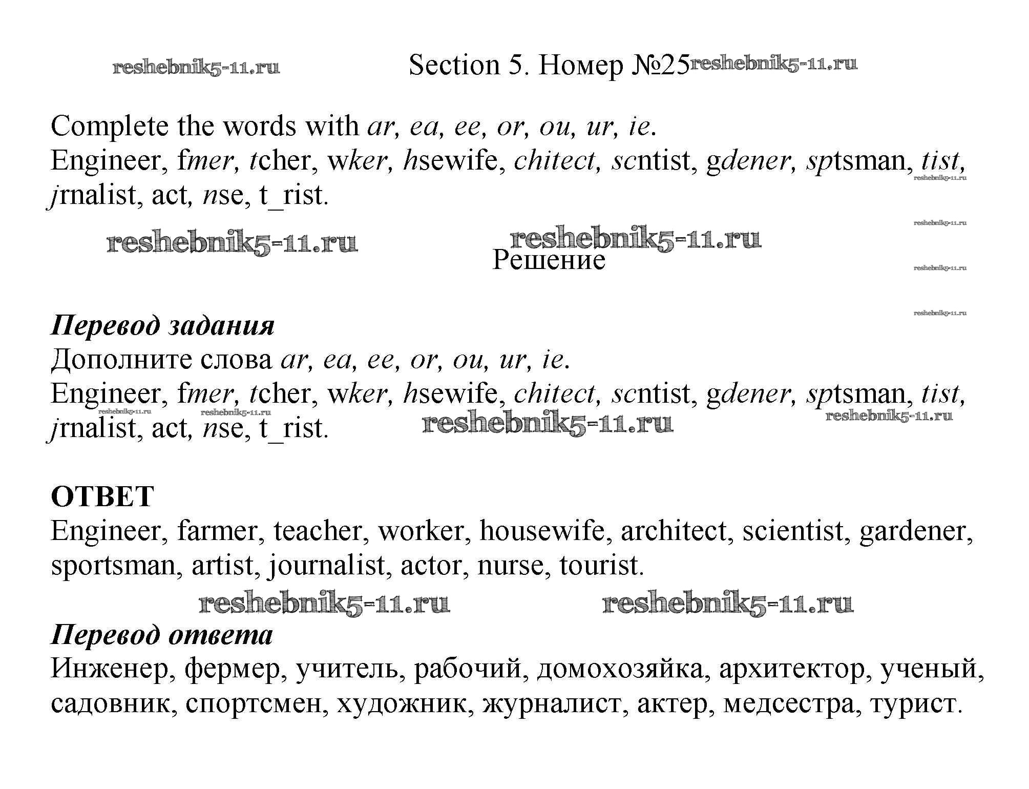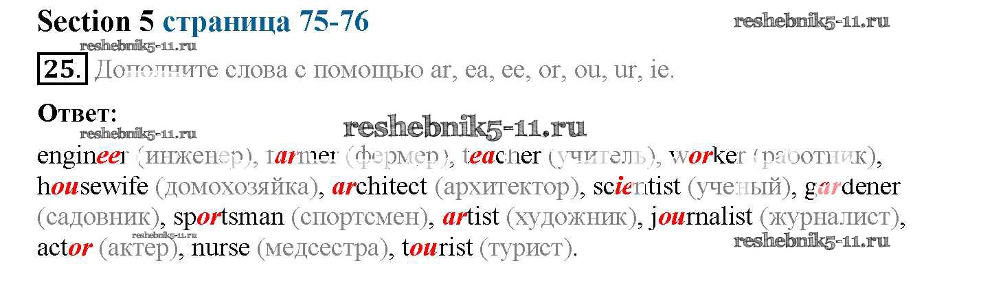 Готовая домашняя работа с ответами по Английскому языку за 5 класс Биболетова, Денисенко, Трубанева Рабочая тетрадь Enjoy English Дрофа 2019 ФГОС - Exercises 25