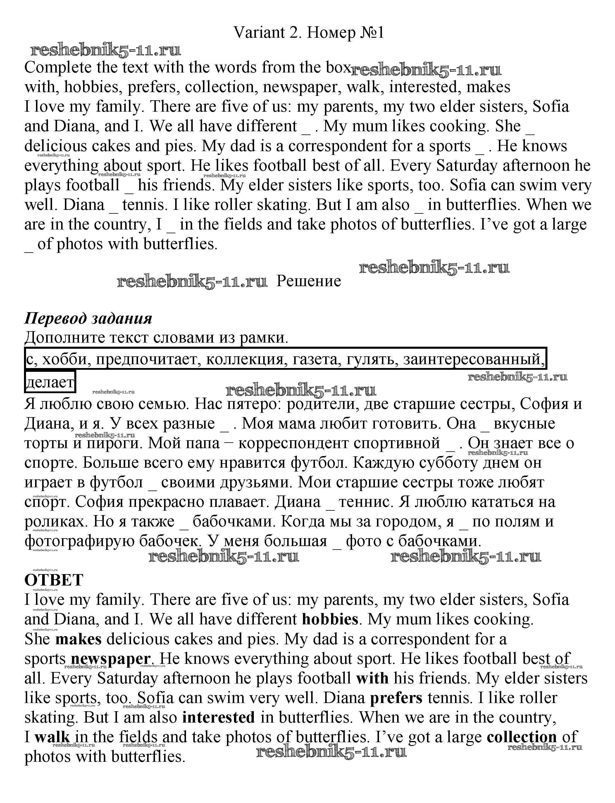 Готовая домашняя работа с ответами по Английскому языку за 5 класс Биболетова, Денисенко, Трубанева Рабочая тетрадь Enjoy English Дрофа 2019 ФГОС - Variant 2 1