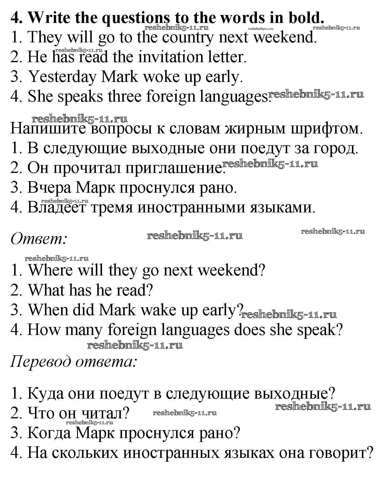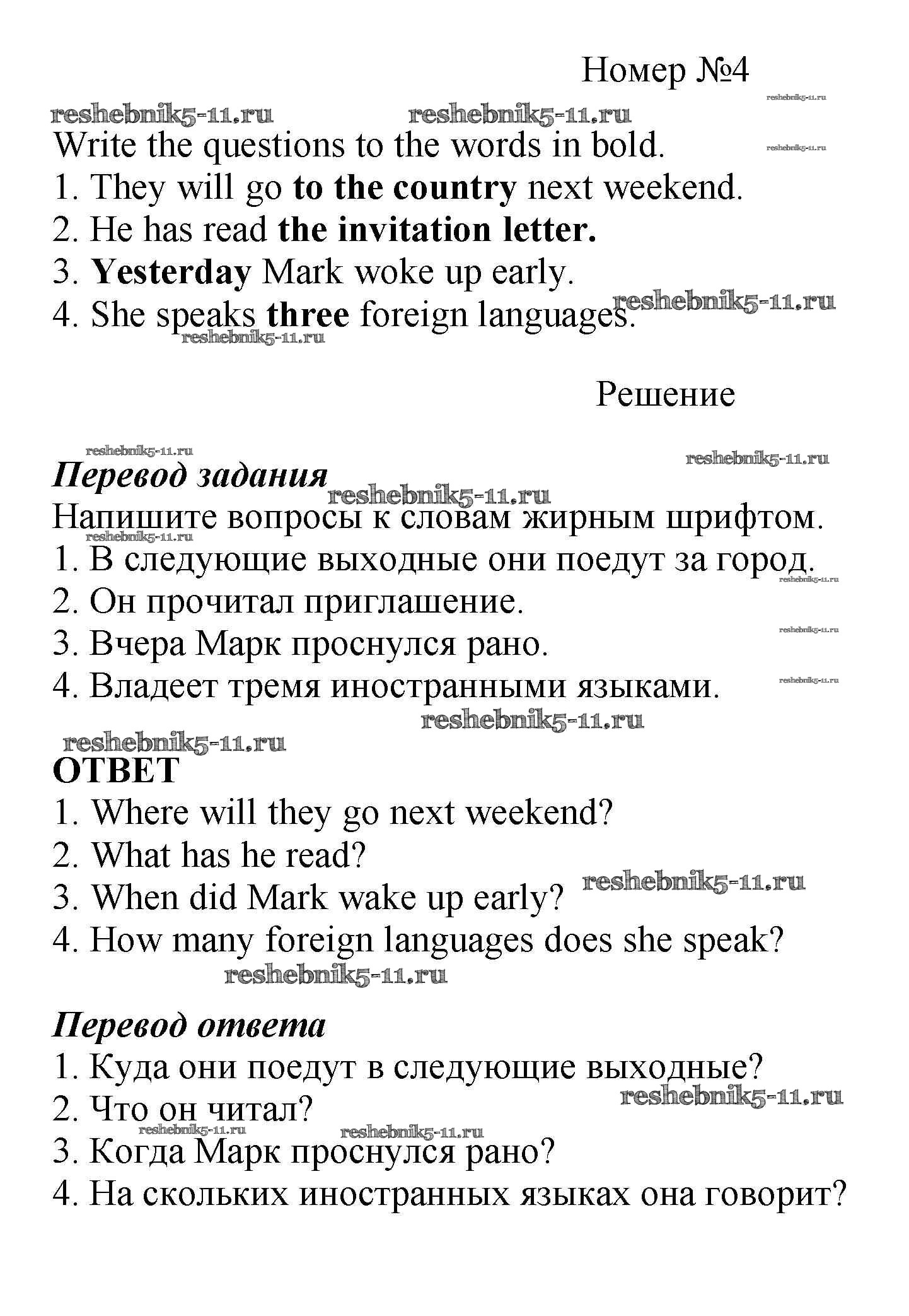 Готовая домашняя работа с ответами по Английскому языку за 5 класс Биболетова, Денисенко, Трубанева Рабочая тетрадь Enjoy English Дрофа 2019 ФГОС - Variant 2 4