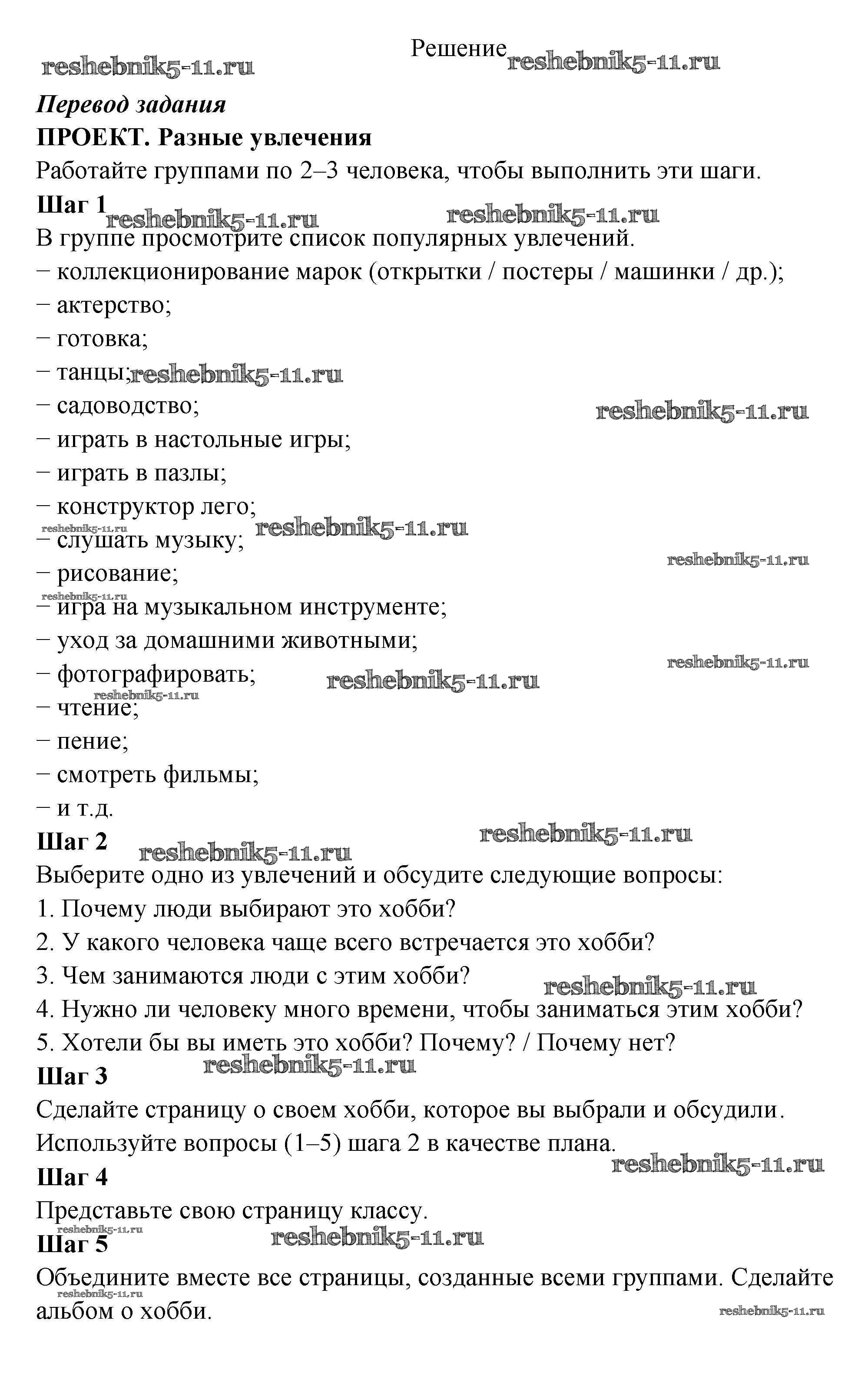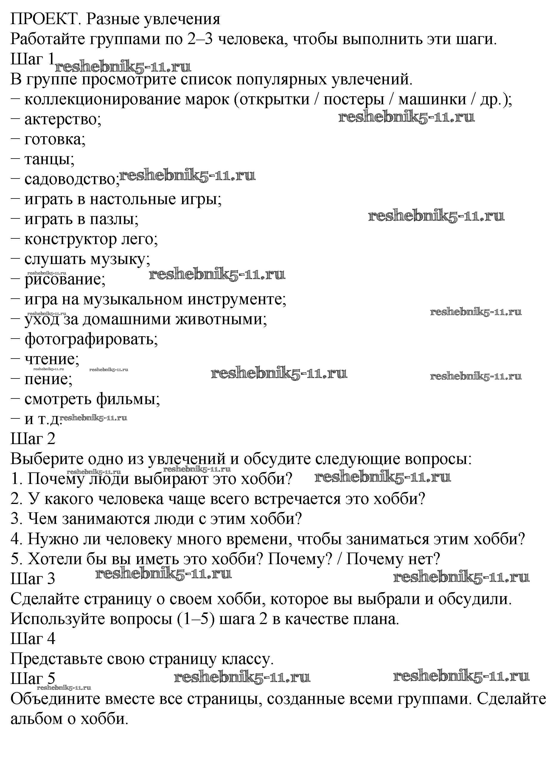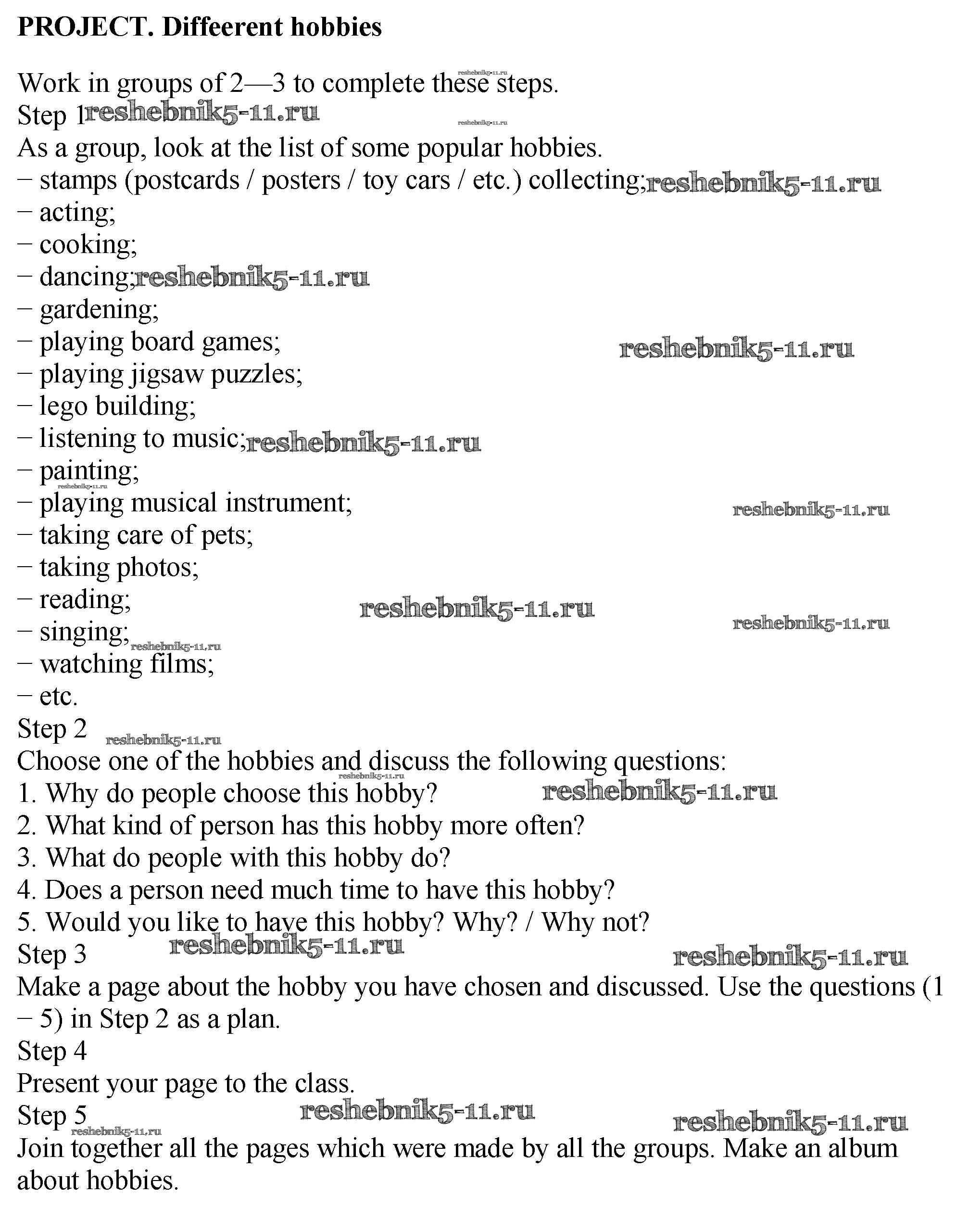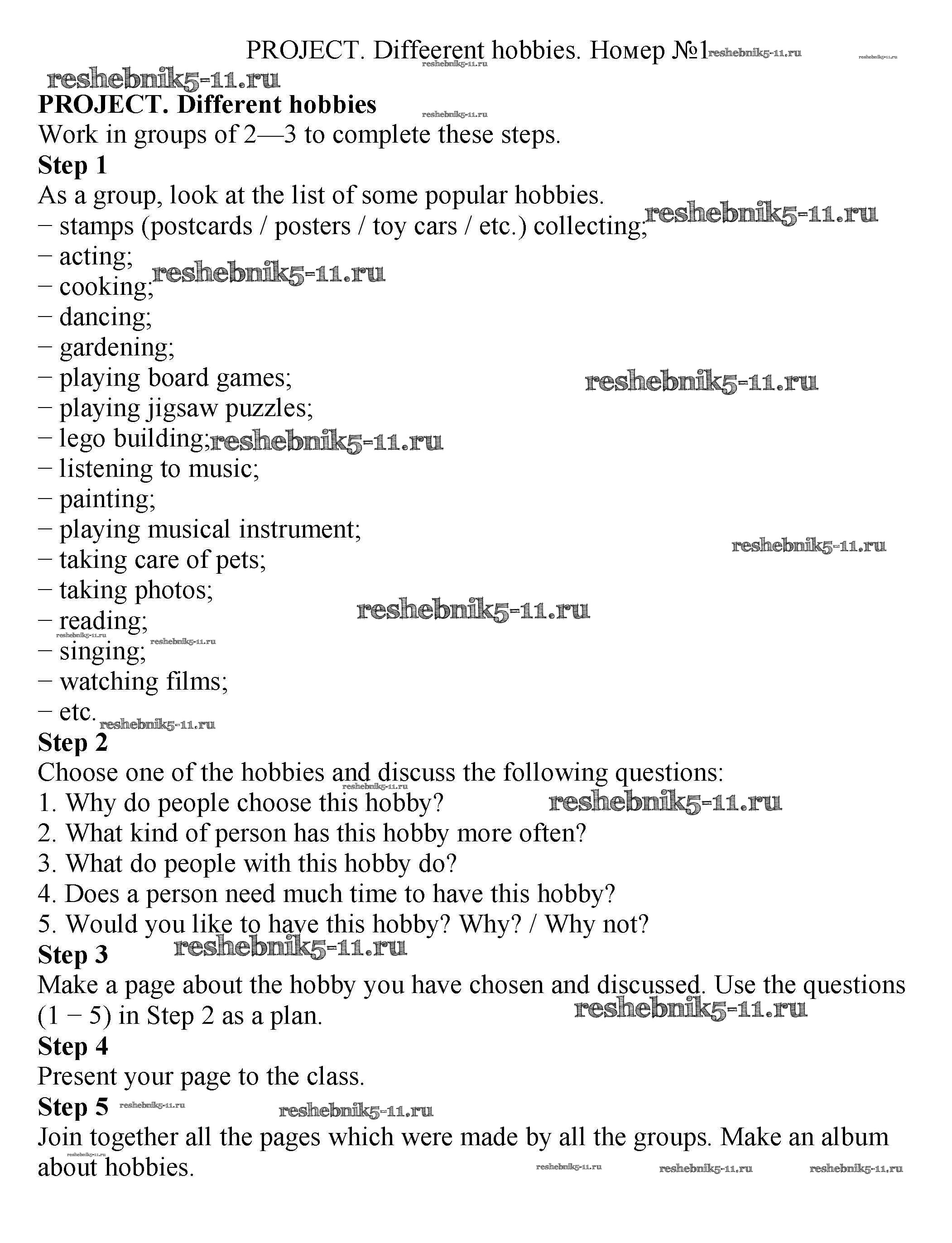 Готовая домашняя работа с ответами по Английскому языку за 5 класс Биболетова, Денисенко, Трубанева Рабочая тетрадь Enjoy English Дрофа 2019 ФГОС - Project. Diffeerent hobbies 1