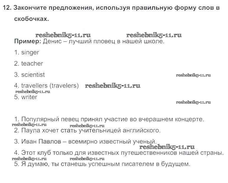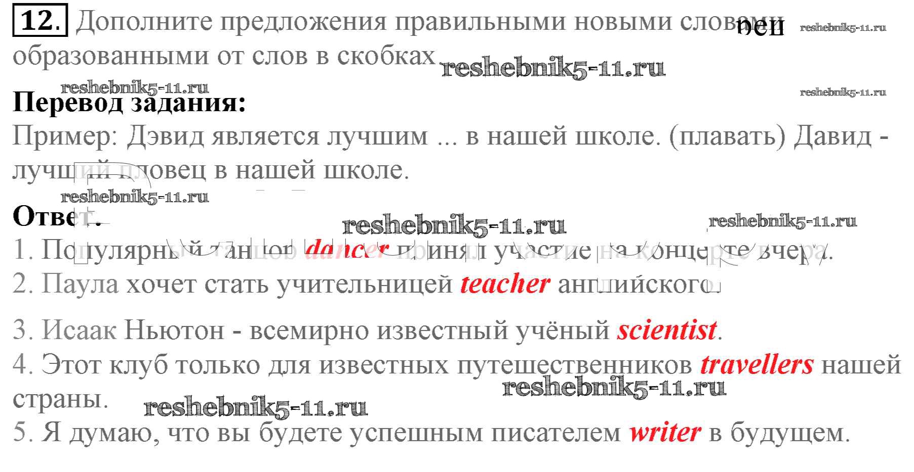 Готовая домашняя работа с ответами по Английскому языку за 5 класс Биболетова, Денисенко, Трубанева Учебник Enjoy English Титул 2015 ФГОС - Домашняя работа 12