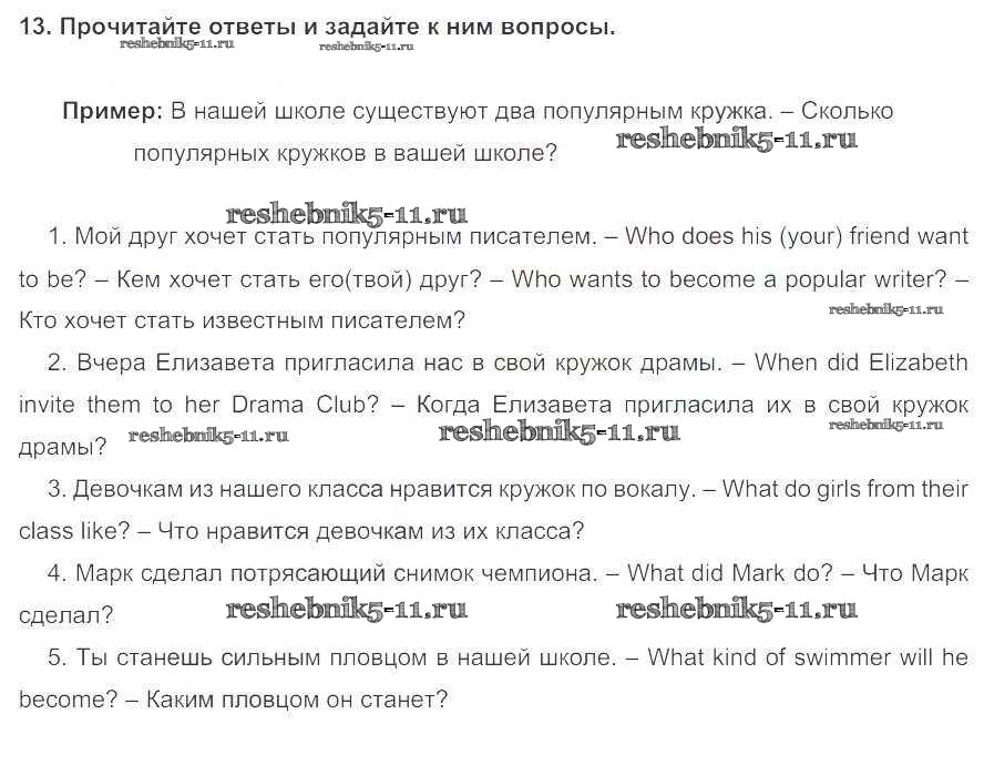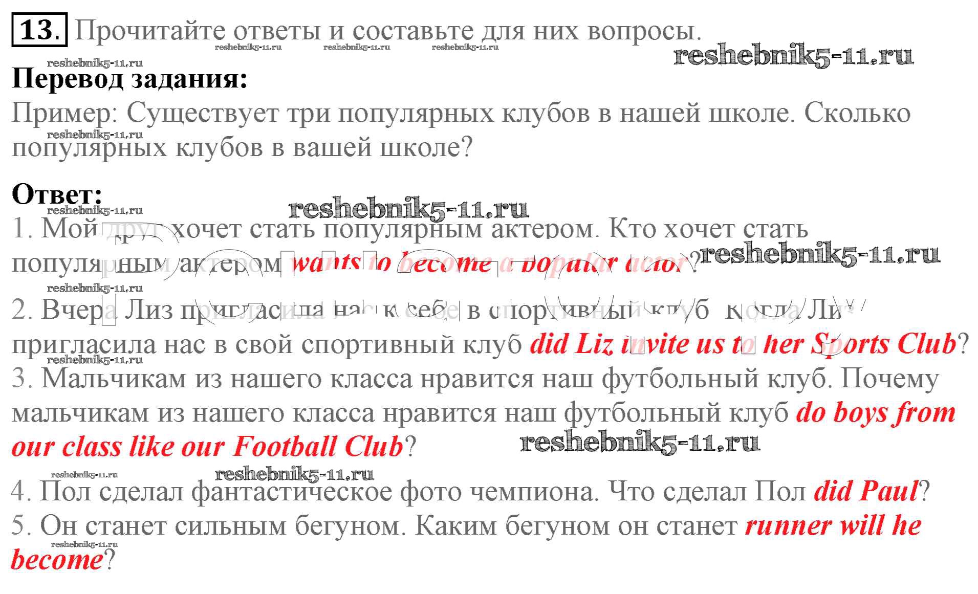 Готовая домашняя работа с ответами по Английскому языку за 5 класс Биболетова, Денисенко, Трубанева Учебник Enjoy English Титул 2015 ФГОС - Домашняя работа 13