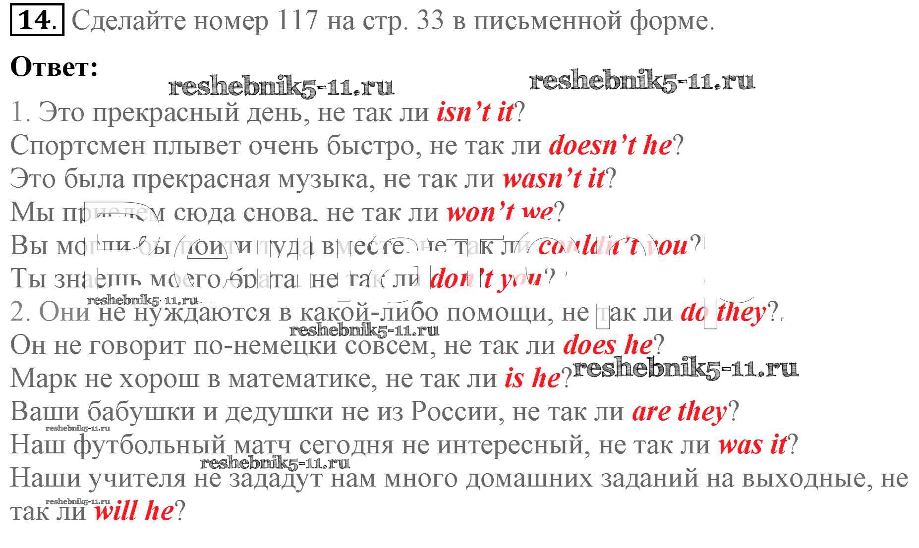 Готовая домашняя работа с ответами по Английскому языку за 5 класс Биболетова, Денисенко, Трубанева Учебник Enjoy English Титул 2015 ФГОС - Домашняя работа 14