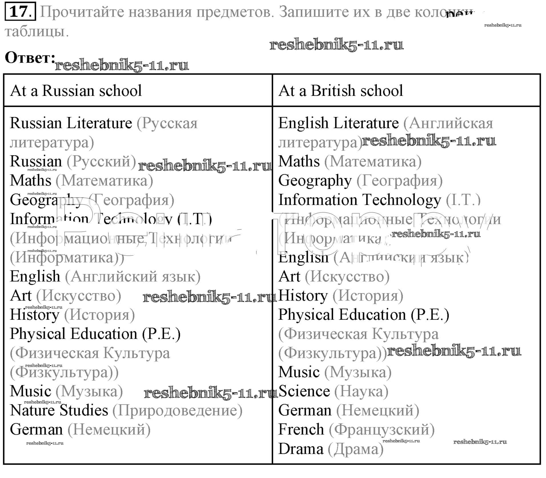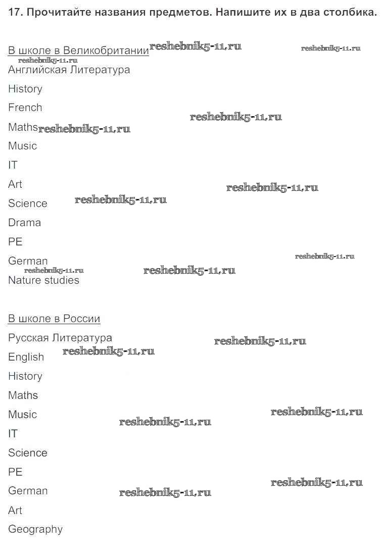 Готовая домашняя работа с ответами по Английскому языку за 5 класс Биболетова, Денисенко, Трубанева Учебник Enjoy English Титул 2015 ФГОС - Домашняя работа 17
