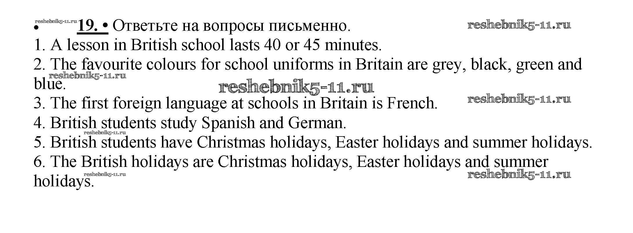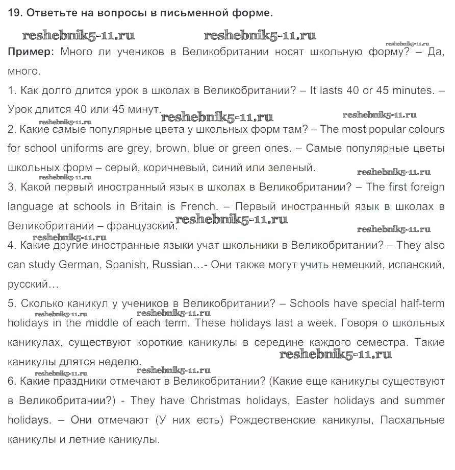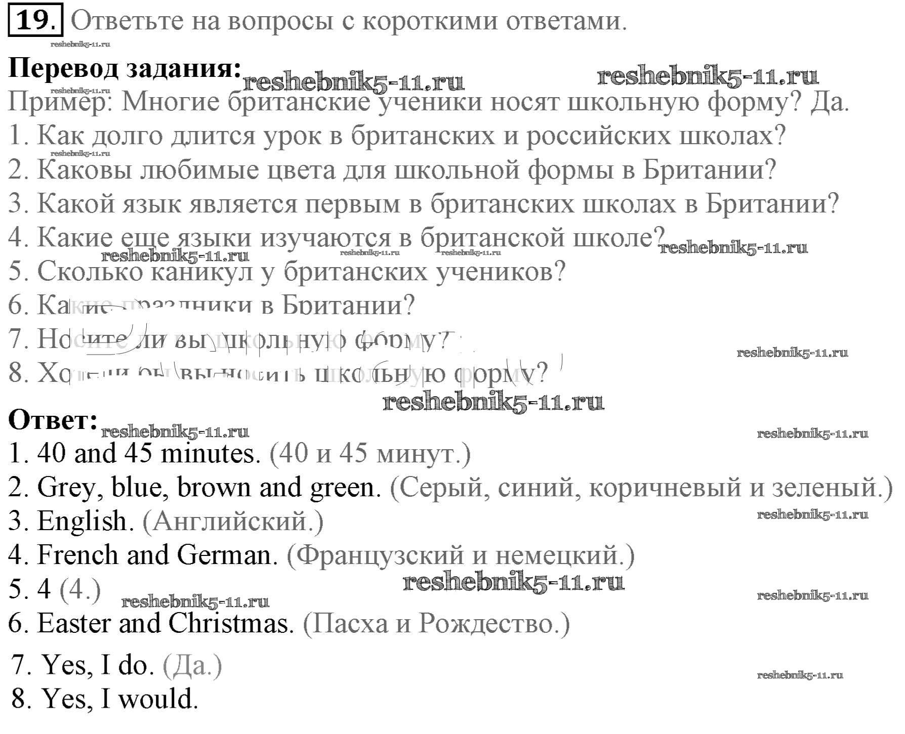 Готовая домашняя работа с ответами по Английскому языку за 5 класс Биболетова, Денисенко, Трубанева Учебник Enjoy English Титул 2015 ФГОС - Домашняя работа 19