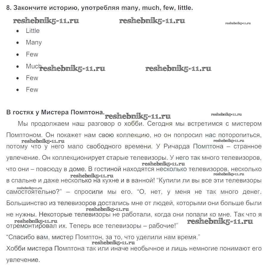 Готовая домашняя работа с ответами по Английскому языку за 5 класс Биболетова, Денисенко, Трубанева Учебник Enjoy English Титул 2015 ФГОС - Домашняя работа 8