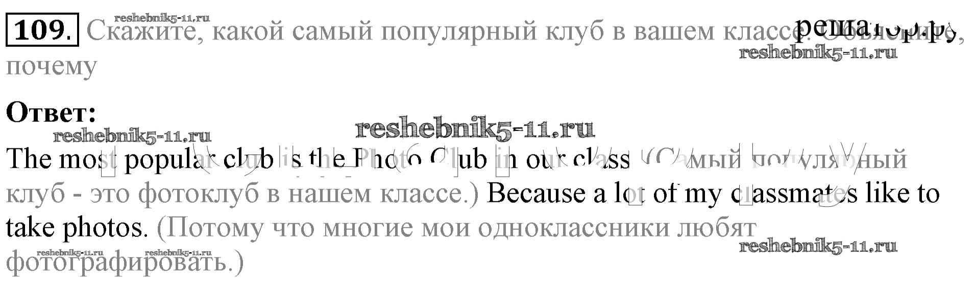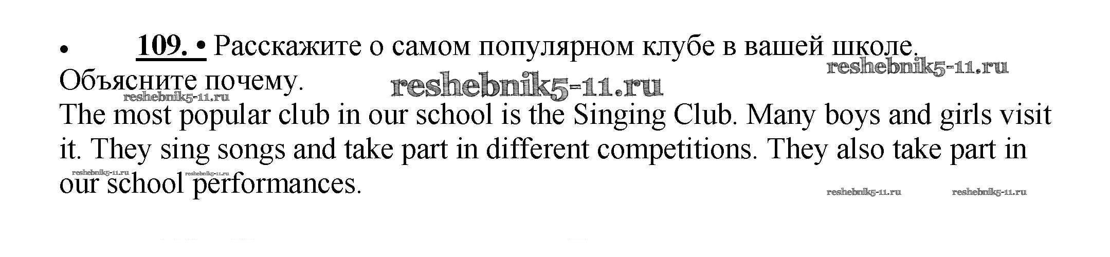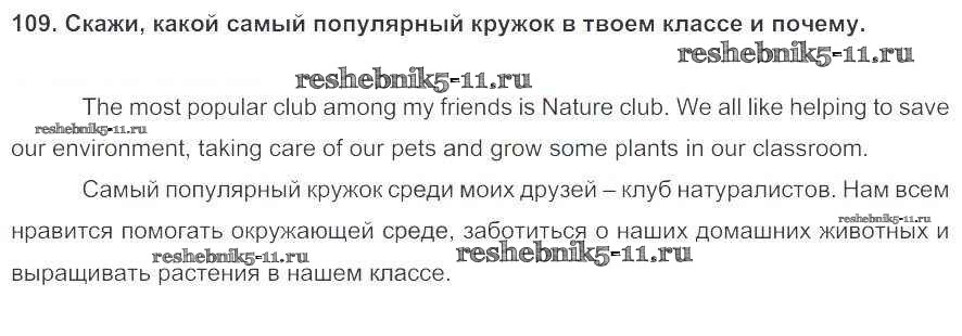 Готовая домашняя работа с ответами по Английскому языку за 5 класс Биболетова, Денисенко, Трубанева Учебник Enjoy English Титул 2015 ФГОС - Unit 1. Hello! Nice to see you again! 109